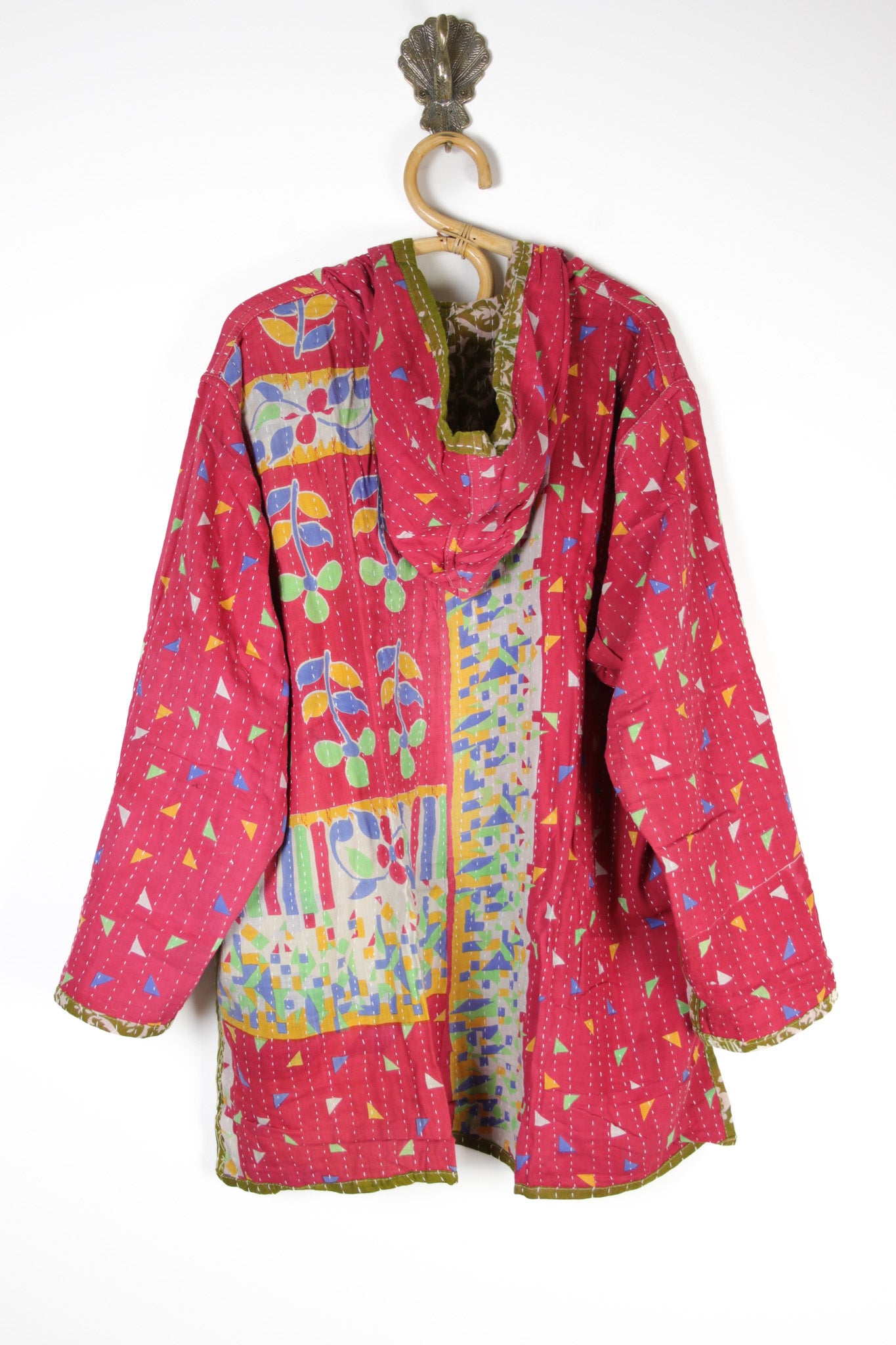 Crafted from soft 3-layer Indian cotton kantha fabrics, every hoodie is truly one-of-a-kind. Long sleeves, a hi-lo hemline, a big roomy hood and a front pocket inside and out because, did we mention? They're fully reversible! So it’s basically two hoodies in one!