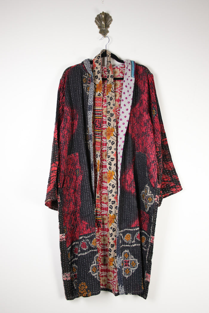 Made from soft, 2-layer kantha, they’ve got a big cozy hood, deep pockets, they’re fully reversible and that dreamy midi length just works with everything.