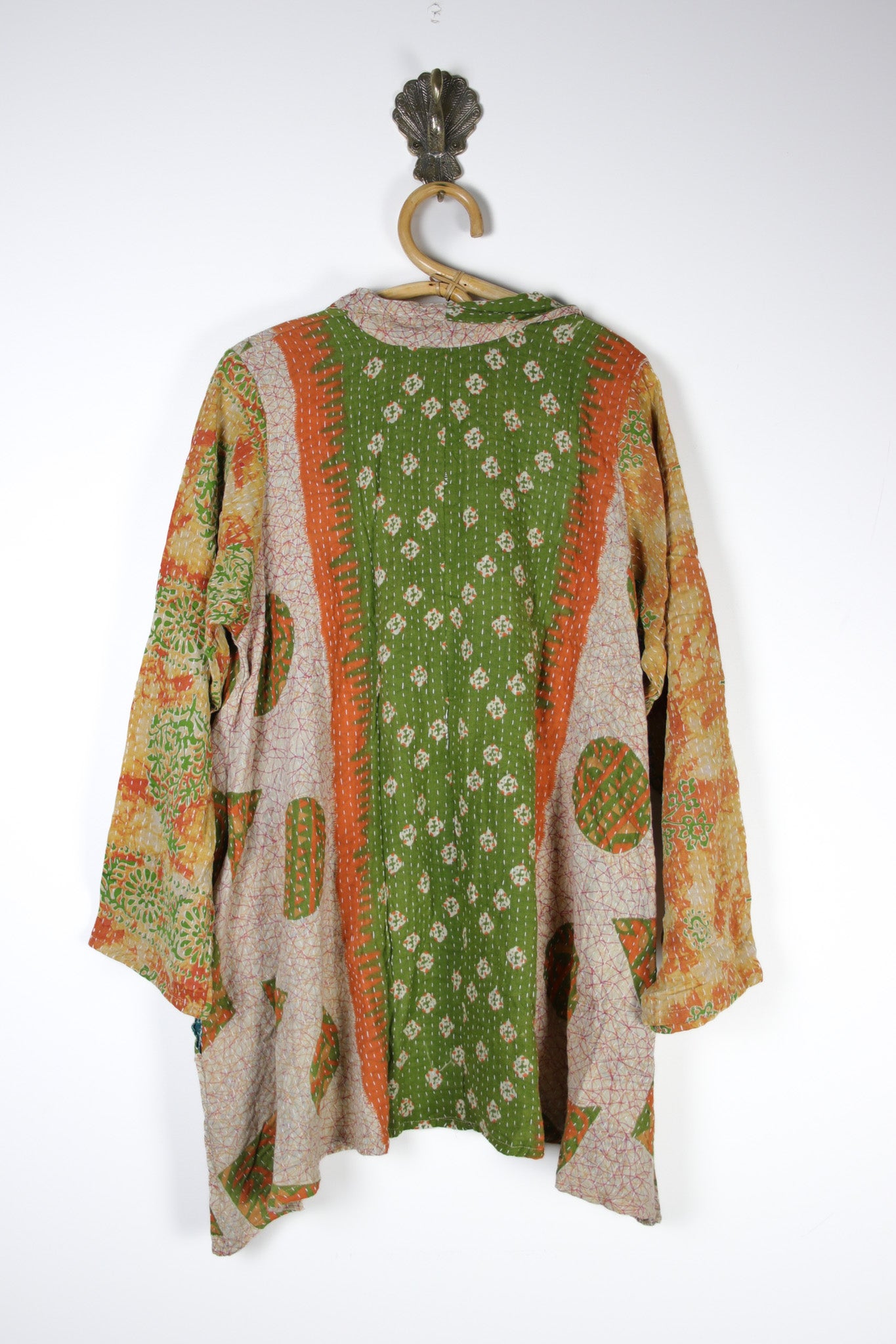 Disclaimer: All our kantha clothing is made using vintage Indian cotton fabrics, there may occasionally be very small repairs, threads, marks or pattern/dye inconsistencies. We do our best to avoid these but it does happen on occasion, these fabrics are created from cotton saris that have lived a life previous. If you are unsure just drop us an email.