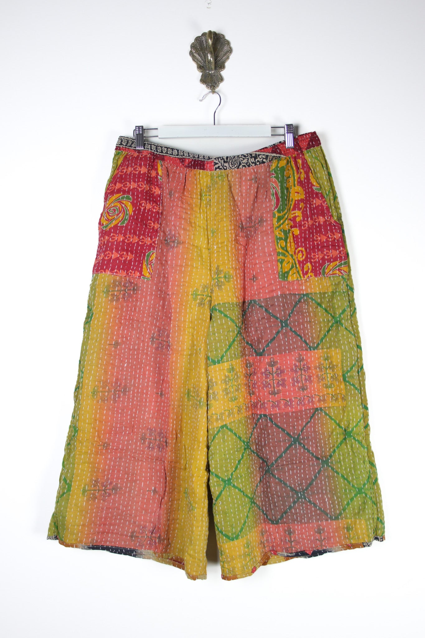 Crafted from Indian cotton Kantha fabric so each pair is one of a kind. Featuring an elastic waistband and drawstring for the perfect fit, deep patch pockets and cropped wide legs. Plus, we made them 100% reversible with pockets on the inside too!