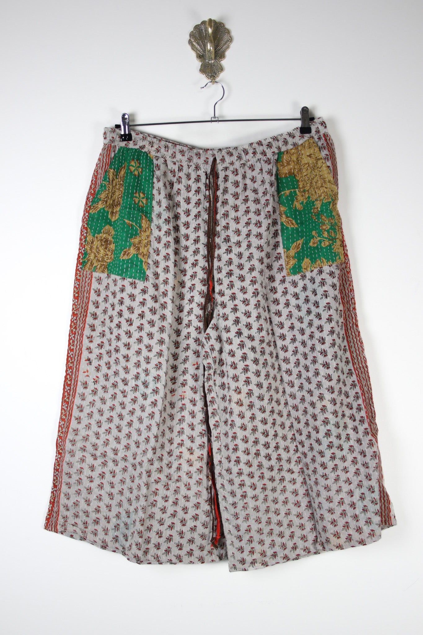 Crafted from Indian cotton Kantha fabric so each pair is one of a kind. Featuring an elastic waistband and drawstring for the perfect fit, deep patch pockets and cropped wide legs. Plus, we made them 100% reversible with pockets on the inside too!