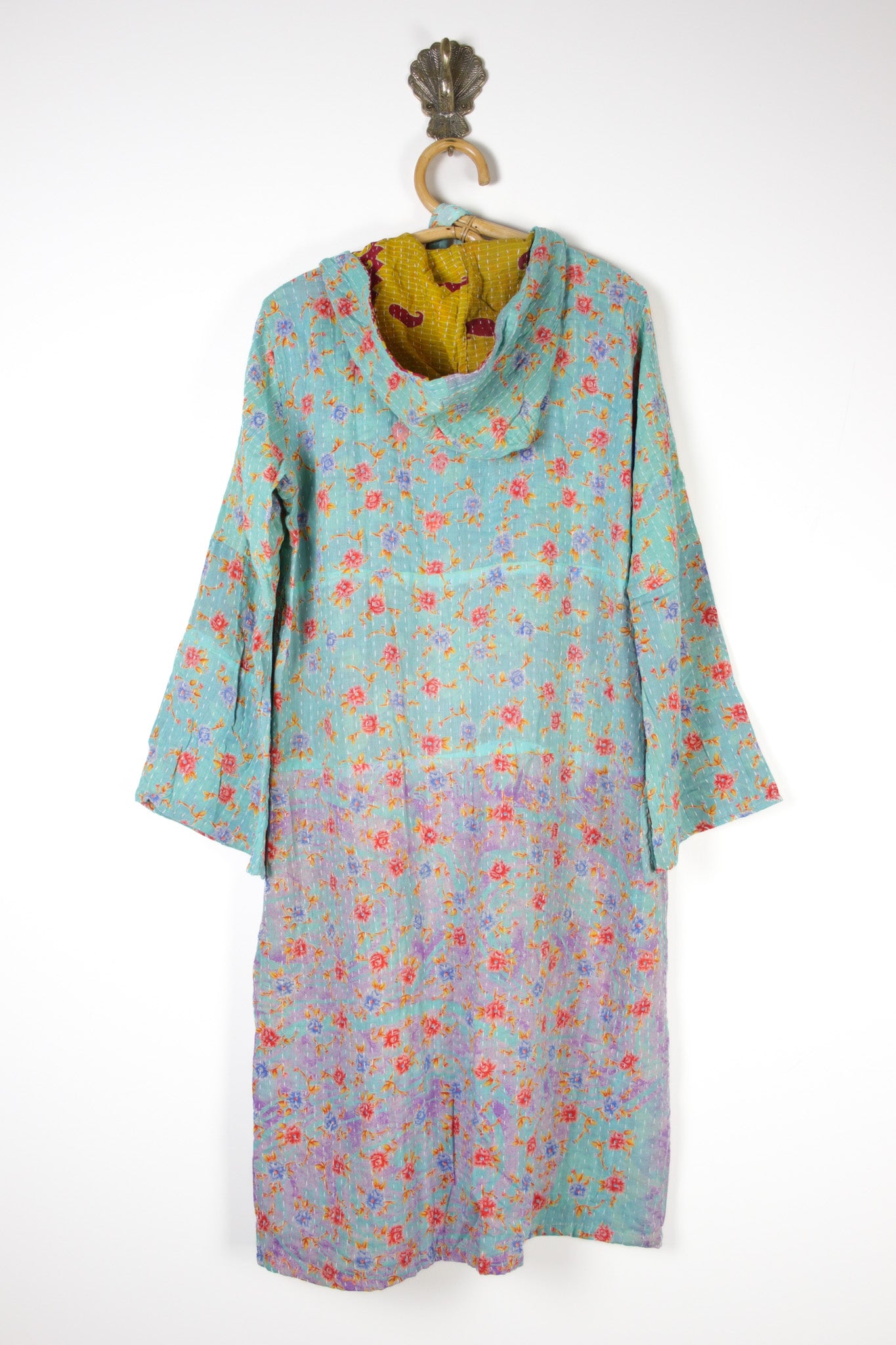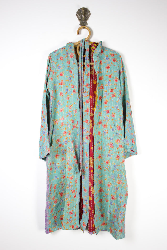 Made from soft, 2-layer kantha, they’ve got a big cozy hood, deep pockets, they’re fully reversible and that dreamy midi length just works with everything.