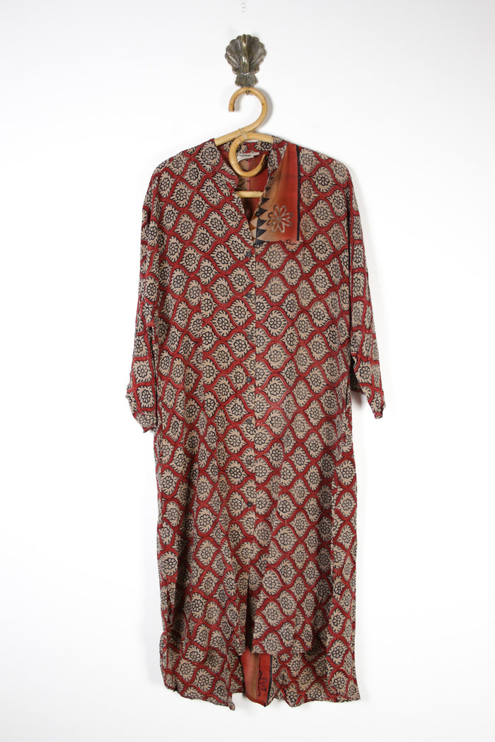 Disclaimer: All our silk clothing is made using recycled Indian sari fabrics, there may occasionally be very small repairs, threads, marks or pattern/dye inconsistencies. We do our best to avoid these but it does happen on occasion, these fabrics are created from silk-blend saris that have lived a life previous. If you are unsure just drop us an email.