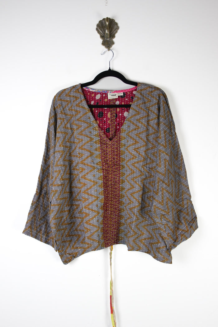 Disclaimer: All our kantha clothing is made using vintage Indian cotton fabrics, there may occasionally be very small repairs, threads, marks or pattern/dye inconsistencies. We do our best to avoid these but it does happen on occasion, these fabrics are created from cotton saris that have lived a life previous. If you are unsure just drop us an email.