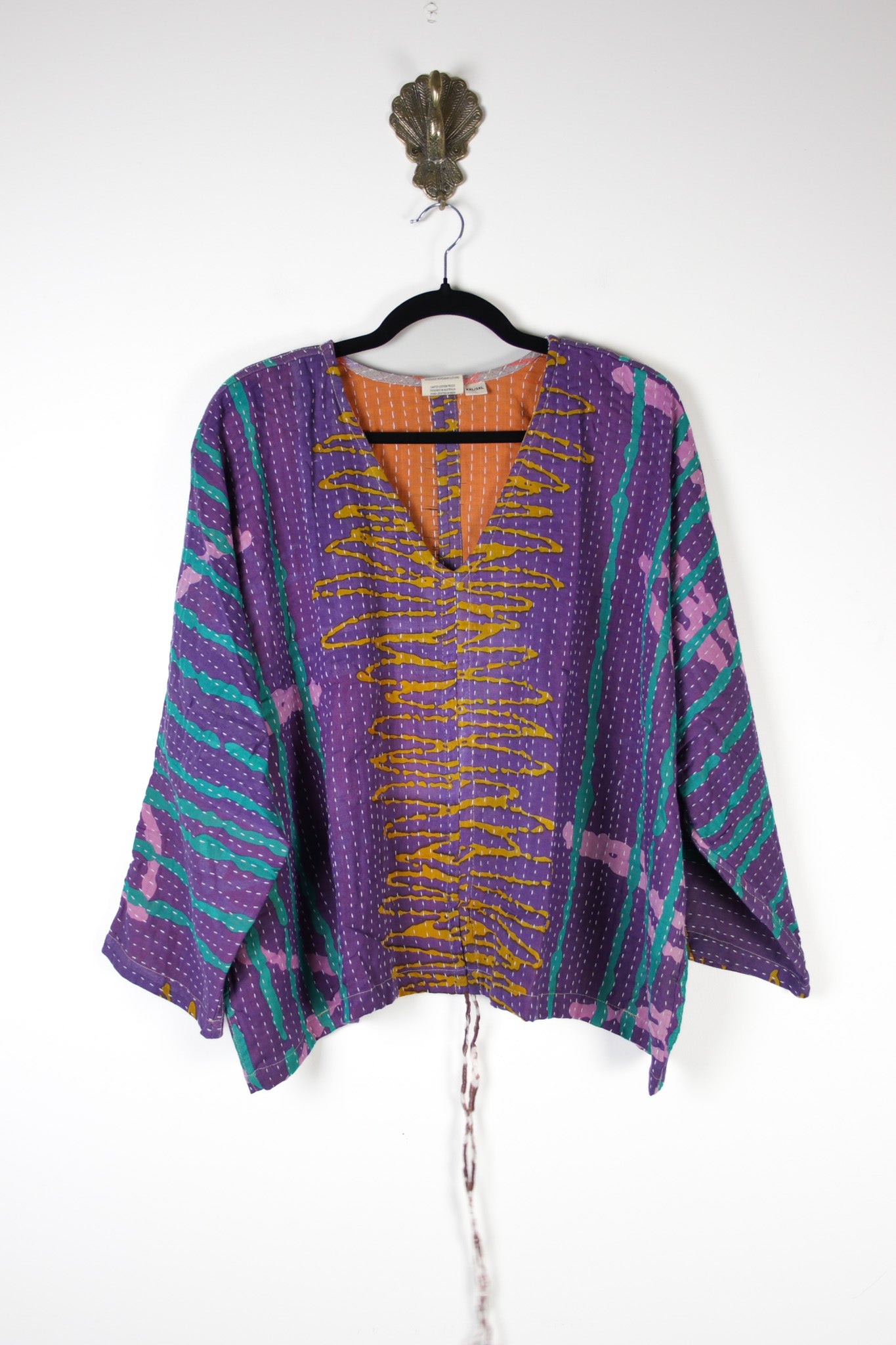 Disclaimer: All our kantha clothing is made using vintage Indian cotton fabrics, there may occasionally be very small repairs, threads, marks or pattern/dye inconsistencies. We do our best to avoid these but it does happen on occasion, these fabrics are created from cotton saris that have lived a life previous. If you are unsure just drop us an email.