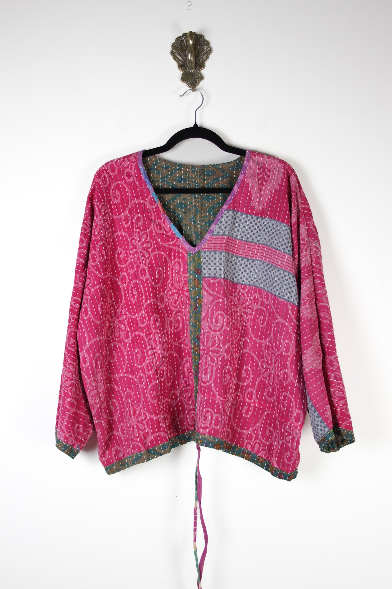 Disclaimer: All our kantha clothing is made using vintage Indian cotton fabrics, there may occasionally be very small repairs, threads, marks or pattern/dye inconsistencies. We do our best to avoid these but it does happen on occasion, these fabrics are created from cotton saris that have lived a life previous. If you are unsure just drop us an email.