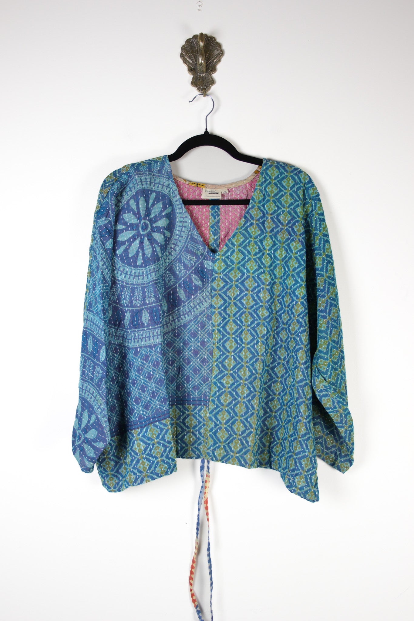 Disclaimer: All our kantha clothing is made using vintage Indian cotton fabrics, there may occasionally be very small repairs, threads, marks or pattern/dye inconsistencies. We do our best to avoid these but it does happen on occasion, these fabrics are created from cotton saris that have lived a life previous. If you are unsure just drop us an email.