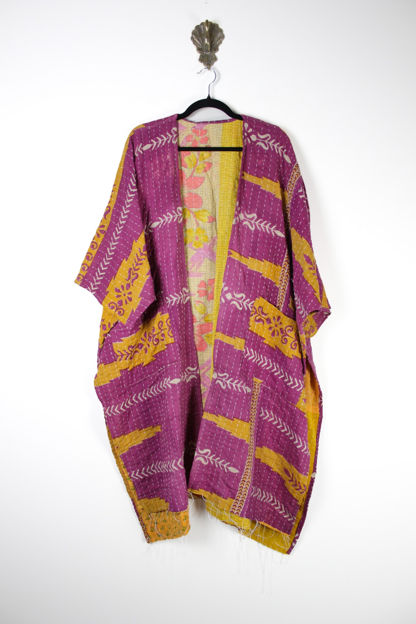 Our best-selling Kantha Ruanas are fully reversible with big, roomy pockets inside and out! Crafted from the softest 3-layer Indian cotton kantha fabrics, each kimono is a one-of-a-kind piece, the perfect layering piece for that effortless bohemian touch.