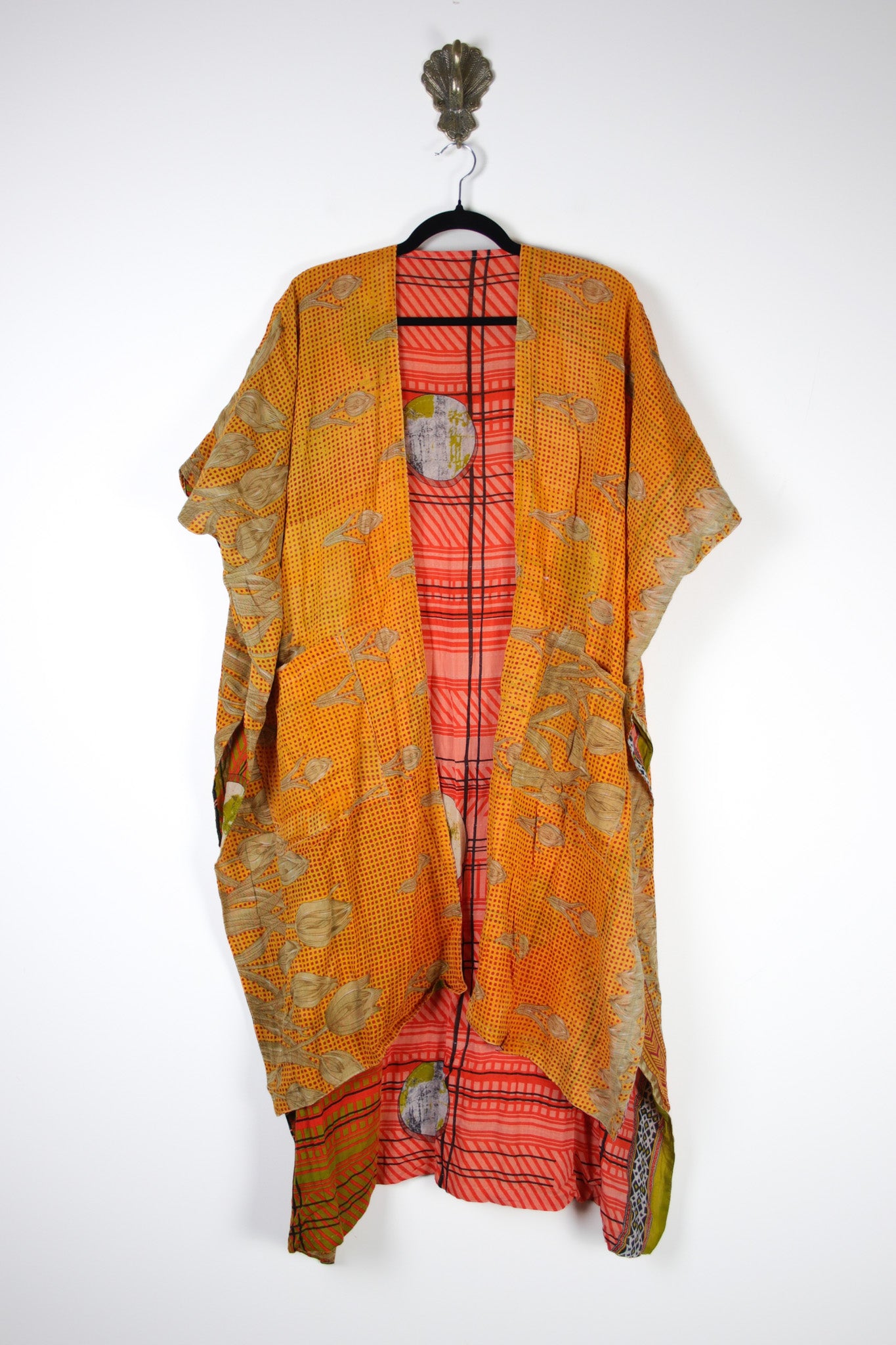 Fully reversible with big, roomy pockets inside and out! Each kimono is a one-of-a-kind piece, the perfect lightweight layering piece for that effortless bohemian touch.