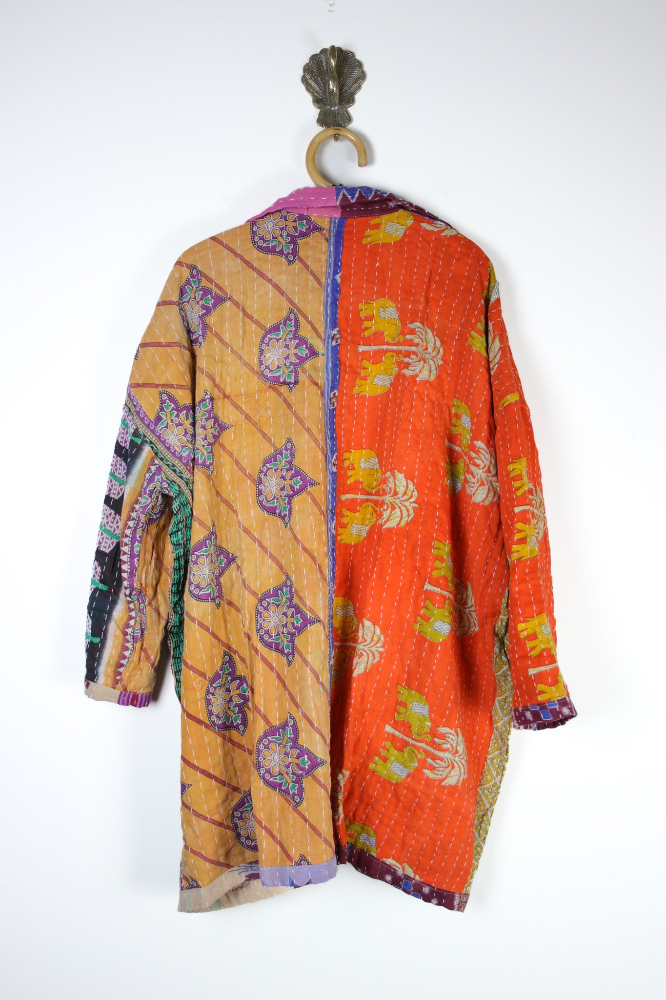 Disclaimer: All our kantha clothing is made using vintage Indian cotton fabrics, there may occasionally be very small repairs, threads, marks or pattern/dye inconsistencies. We do our best to avoid these but it does happen on occasion, these fabrics are created from cotton saris that have lived a life previous. If you are unsure just drop us an email.