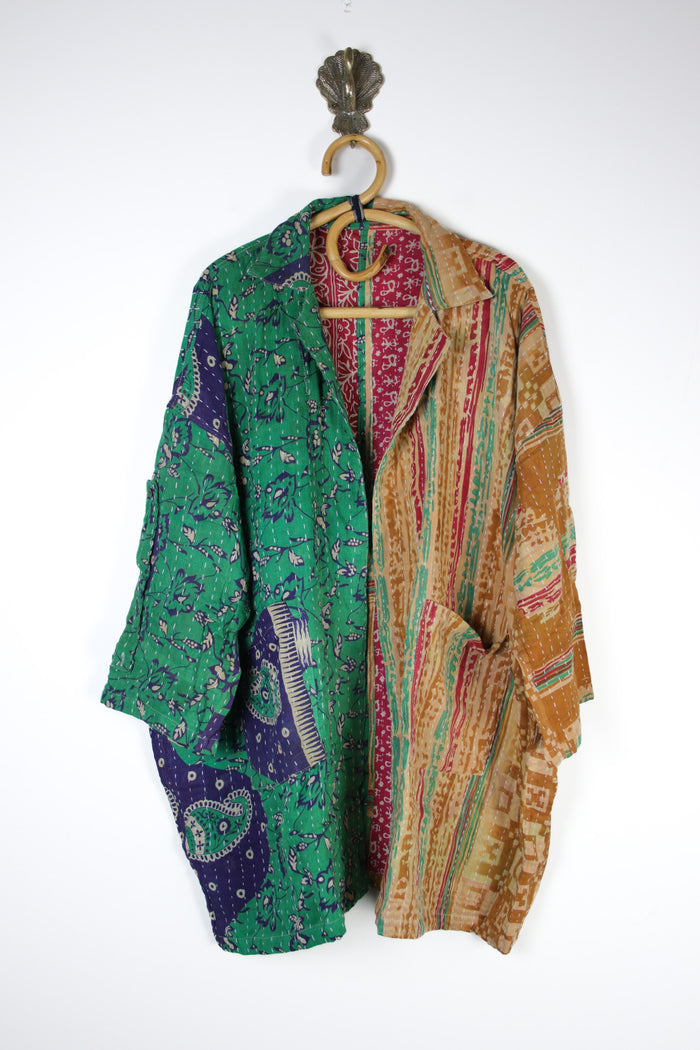Disclaimer: All our kantha clothing is made using vintage Indian cotton fabrics, there may occasionally be very small repairs, threads, marks or pattern/dye inconsistencies. We do our best to avoid these but it does happen on occasion, these fabrics are created from cotton saris that have lived a life previous. If you are unsure just drop us an email.