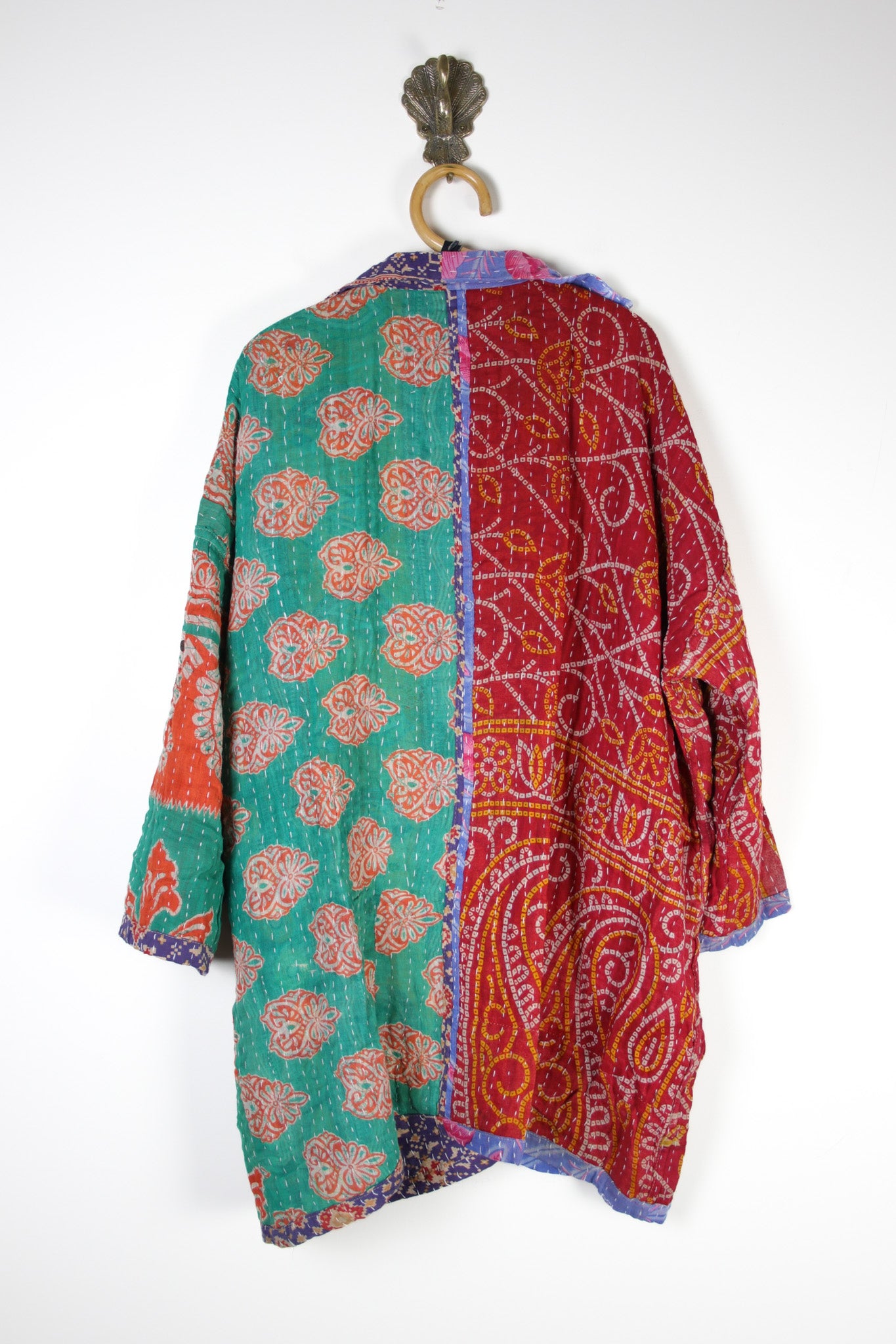 Disclaimer: All our kantha clothing is made using vintage Indian cotton fabrics, there may occasionally be very small repairs, threads, marks or pattern/dye inconsistencies. We do our best to avoid these but it does happen on occasion, these fabrics are created from cotton saris that have lived a life previous. If you are unsure just drop us an email.