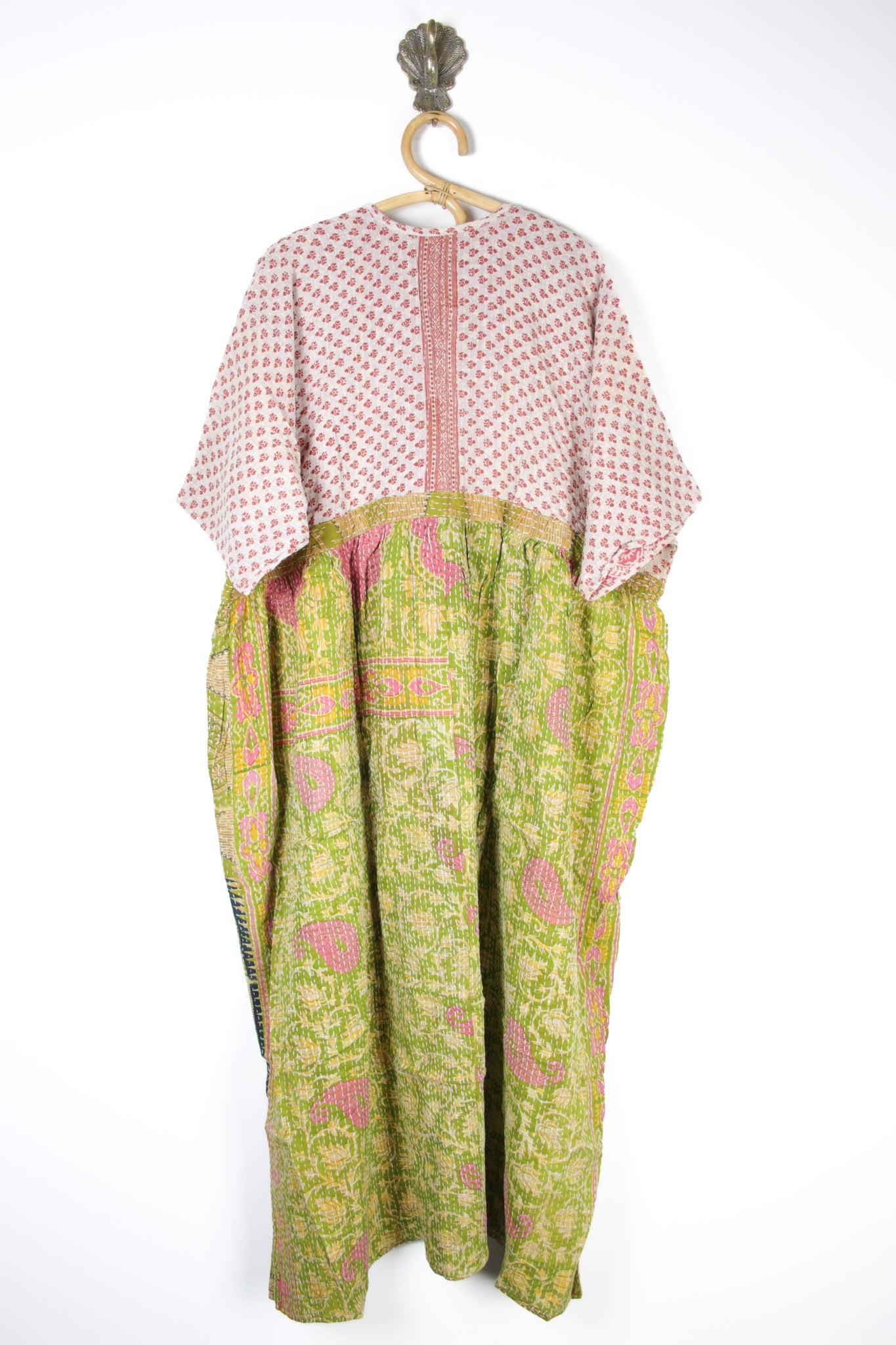 Disclaimer: All our kantha clothing is made using vintage Indian cotton fabrics, there may occasionally be very small repairs, threads, marks or pattern/dye inconsistencies. We do our best to avoid these but it does happen on occasion, these fabrics are created from cotton saris that have lived a life previous. If you are unsure just drop us an email.