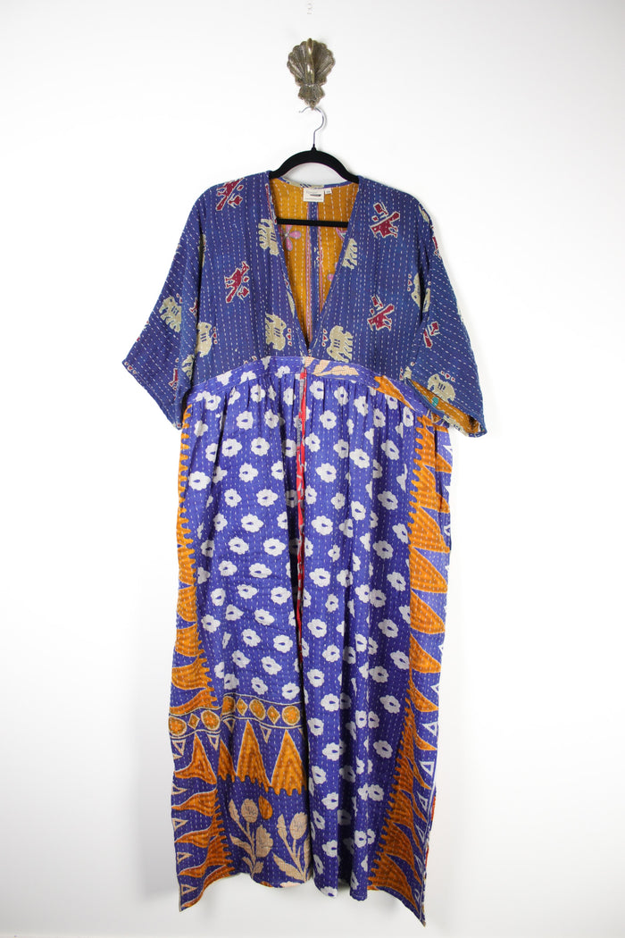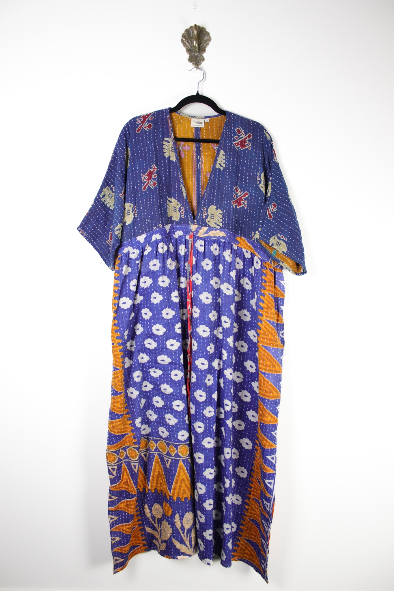 Disclaimer: All our kantha clothing is made using vintage Indian cotton fabrics, there may occasionally be very small repairs, threads, marks or pattern/dye inconsistencies. We do our best to avoid these but it does happen on occasion, these fabrics are created from cotton saris that have lived a life previous. If you are unsure just drop us an email.