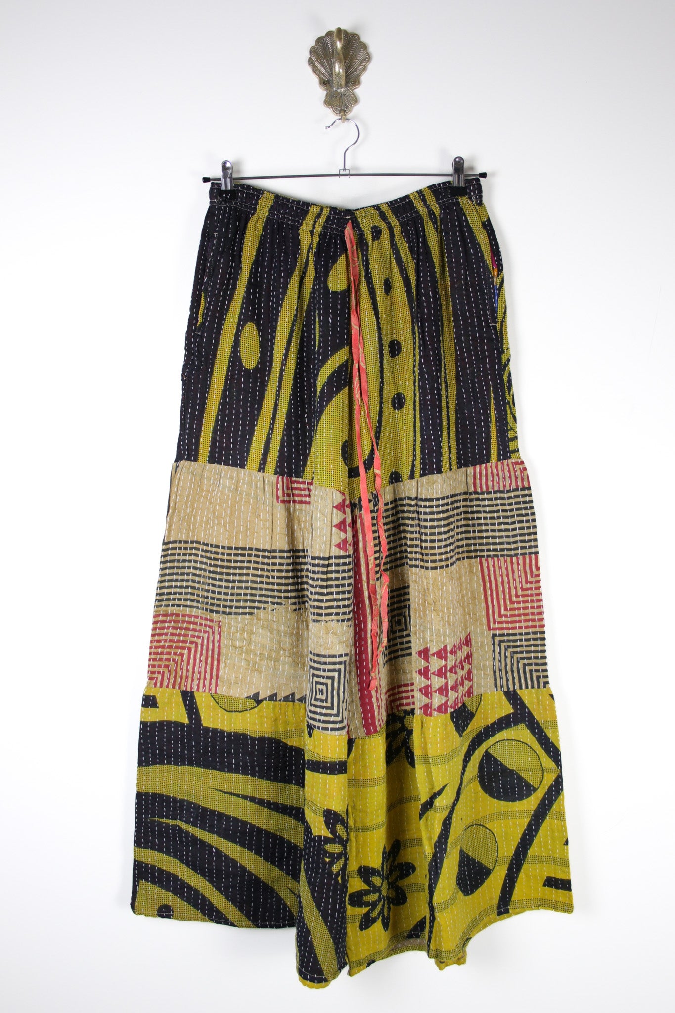 Our Mahi Kantha Pants are wide-leg beauties crafted from two unique kanthas, making each pair a one-of-a-kind masterpiece. Designed with an elastic high waist (with a drawstring for the perfect fit) and deep hidden pockets. They’re bursting with colour and fun, perfect for adding a touch of bohemian hippie flair to any eclectic outfit.