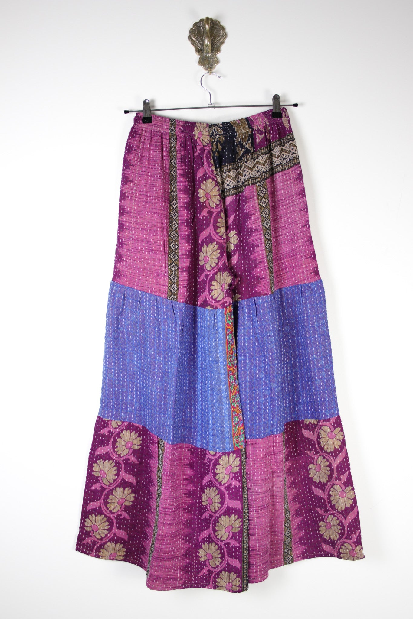 Our Mahi Kantha Pants are wide-leg beauties crafted from two unique kanthas, making each pair a one-of-a-kind masterpiece. Designed with an elastic high waist (with a drawstring for the perfect fit) and deep hidden pockets. They’re bursting with colour and fun, perfect for adding a touch of bohemian hippie flair to any eclectic outfit.