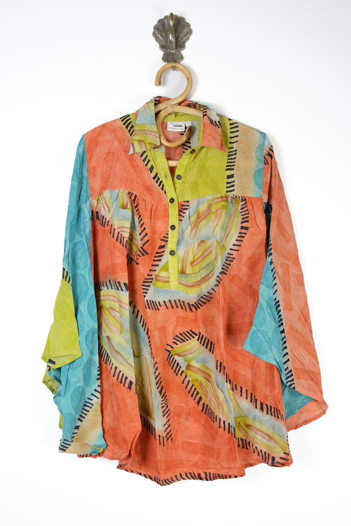 Our Amara Blouse is a just bit special - all flow and ease, those batwing sleeves give it an easy drape with a little drama! Every piece is completely unique thanks to the patterns and colours of the recycled sari silks.