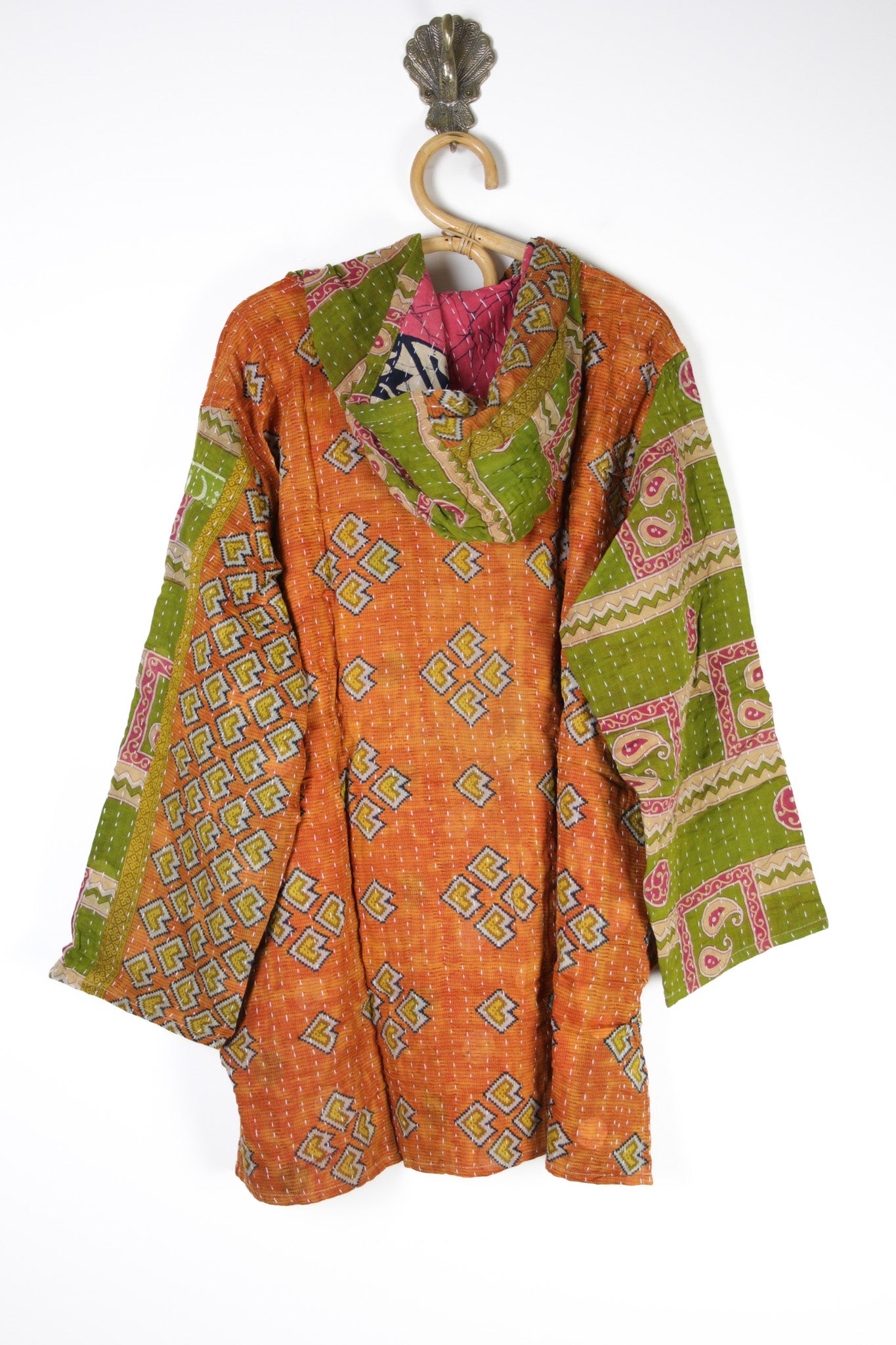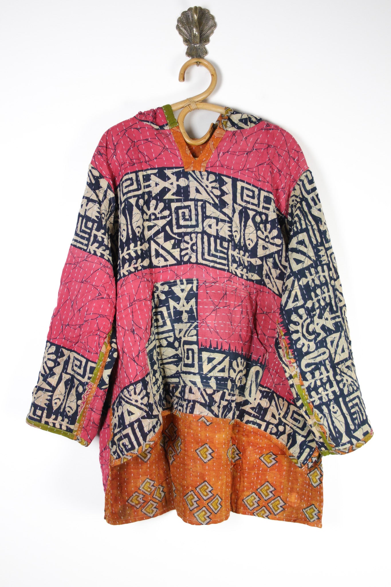 Crafted from soft 3-layer Indian cotton kantha fabrics, every hoodie is truly one-of-a-kind. Long sleeves, a hi-lo hemline, a big roomy hood and a front pocket inside and out because, did we mention? They're fully reversible! So it’s basically two hoodies in one!