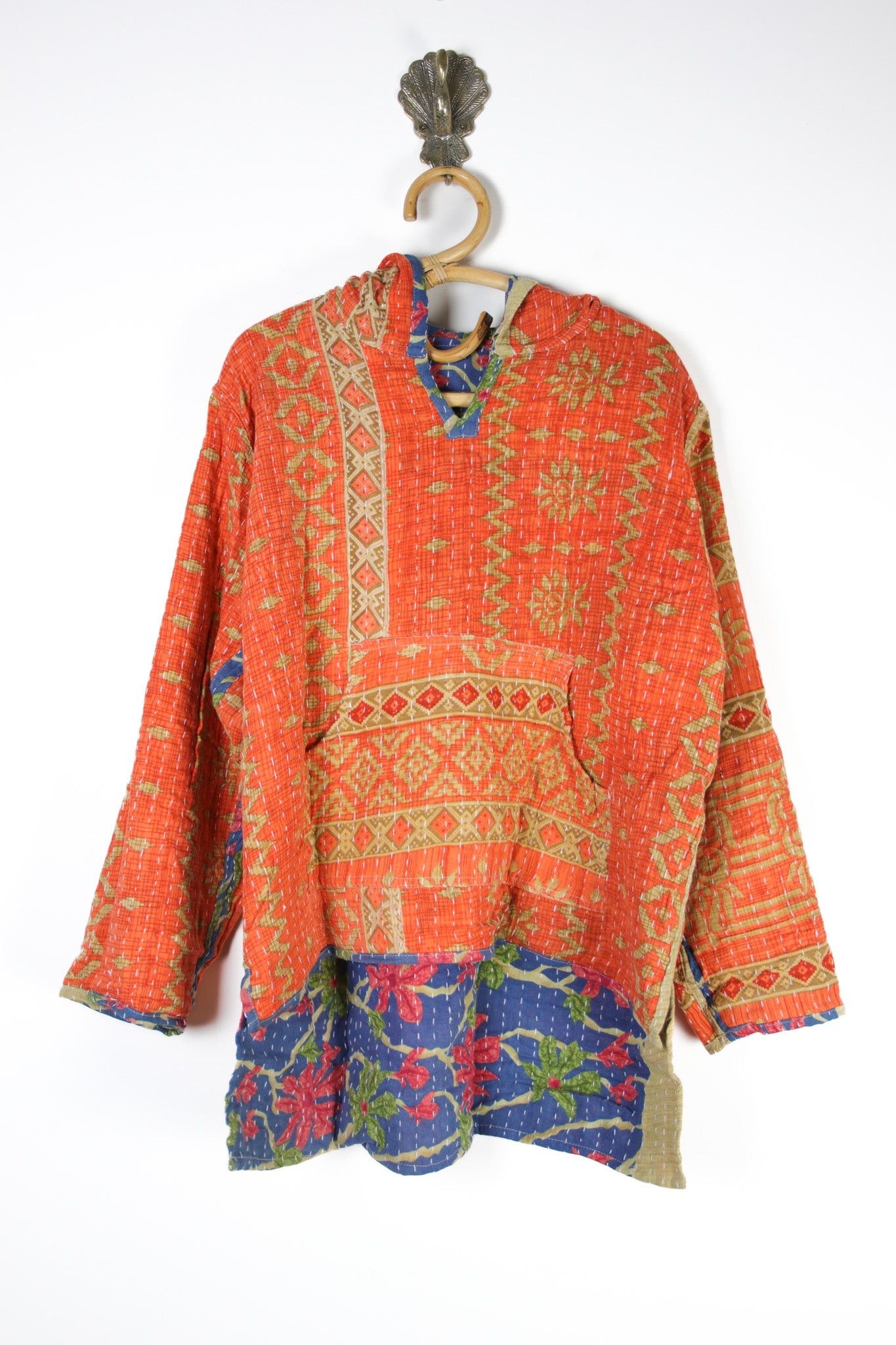 Crafted from soft 3-layer Indian cotton kantha fabrics, every hoodie is truly one-of-a-kind. Long sleeves, a hi-lo hemline, a big roomy hood and a front pocket inside and out because, did we mention? They're fully reversible! So it’s basically two hoodies in one!