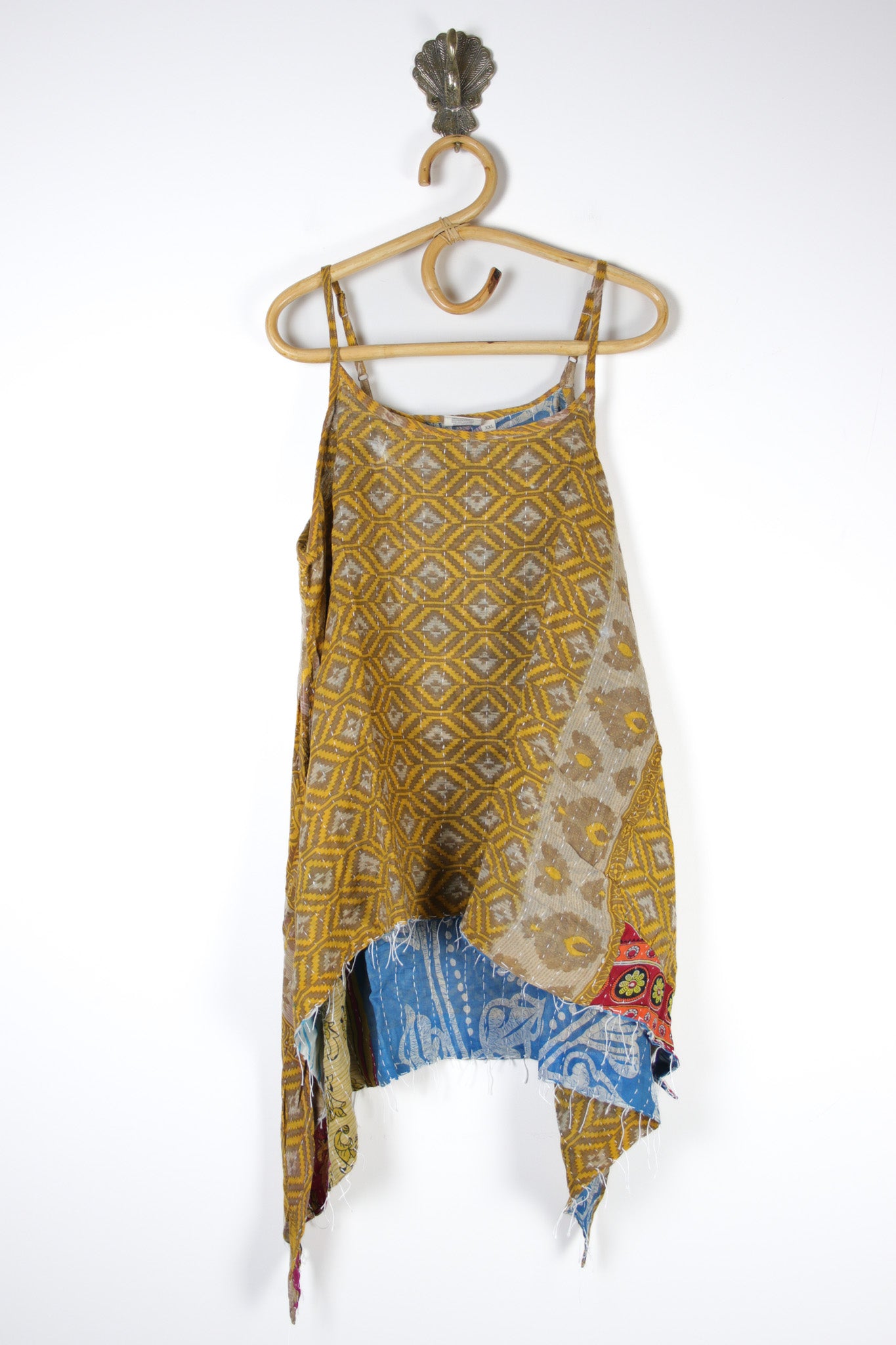 Made from 2 layers of upcycled cotton kantha these beauties have adjustable straps and a relaxed, oversized fit that drapes like a dream. The hi-lo hem adds a little swoosh and they're reversible, which we LOVE!