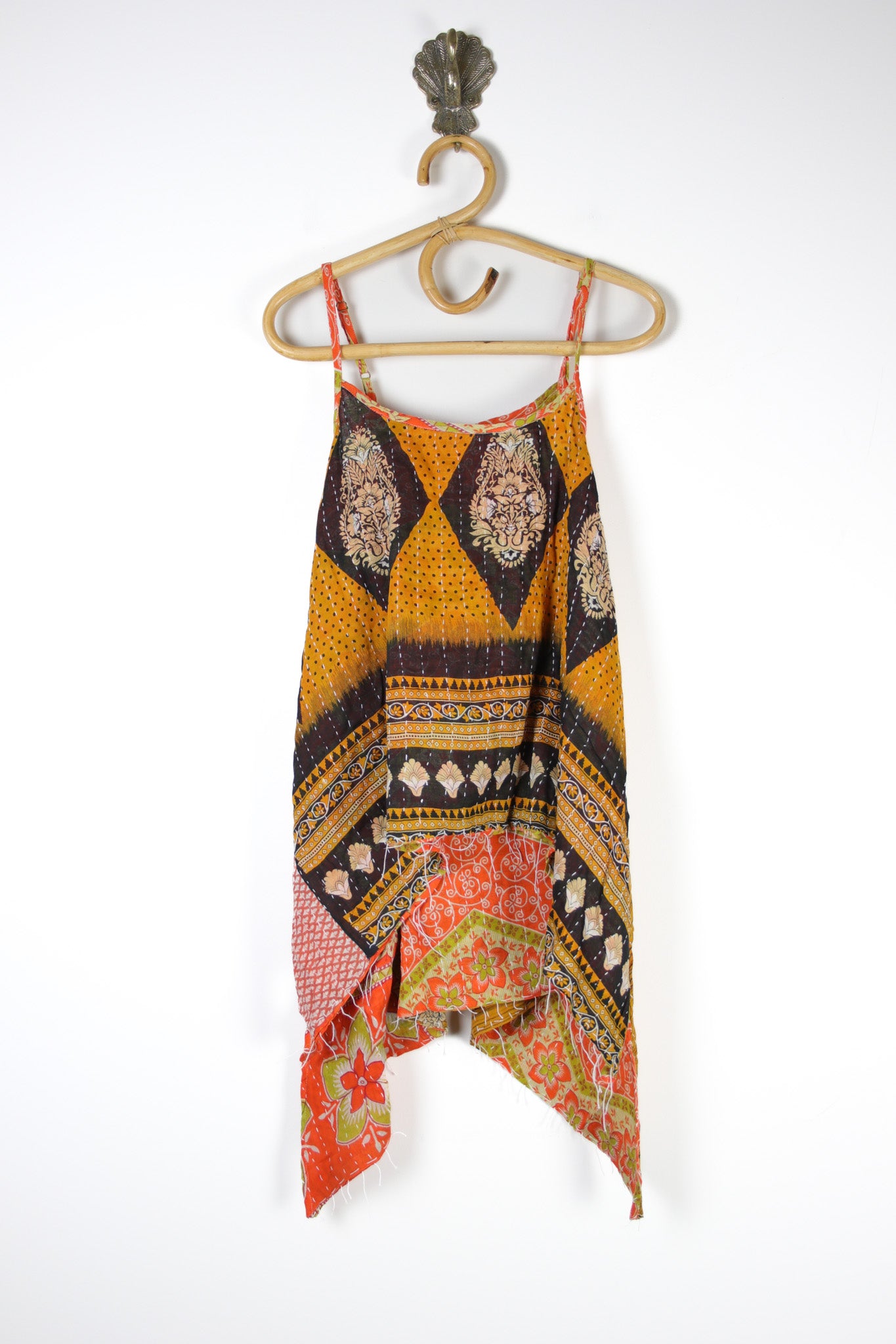 Made from 2 layers of upcycled cotton kantha these beauties have adjustable straps and a relaxed, oversized fit that drapes like a dream. The hi-lo hem adds a little swoosh and they're reversible, which we LOVE!