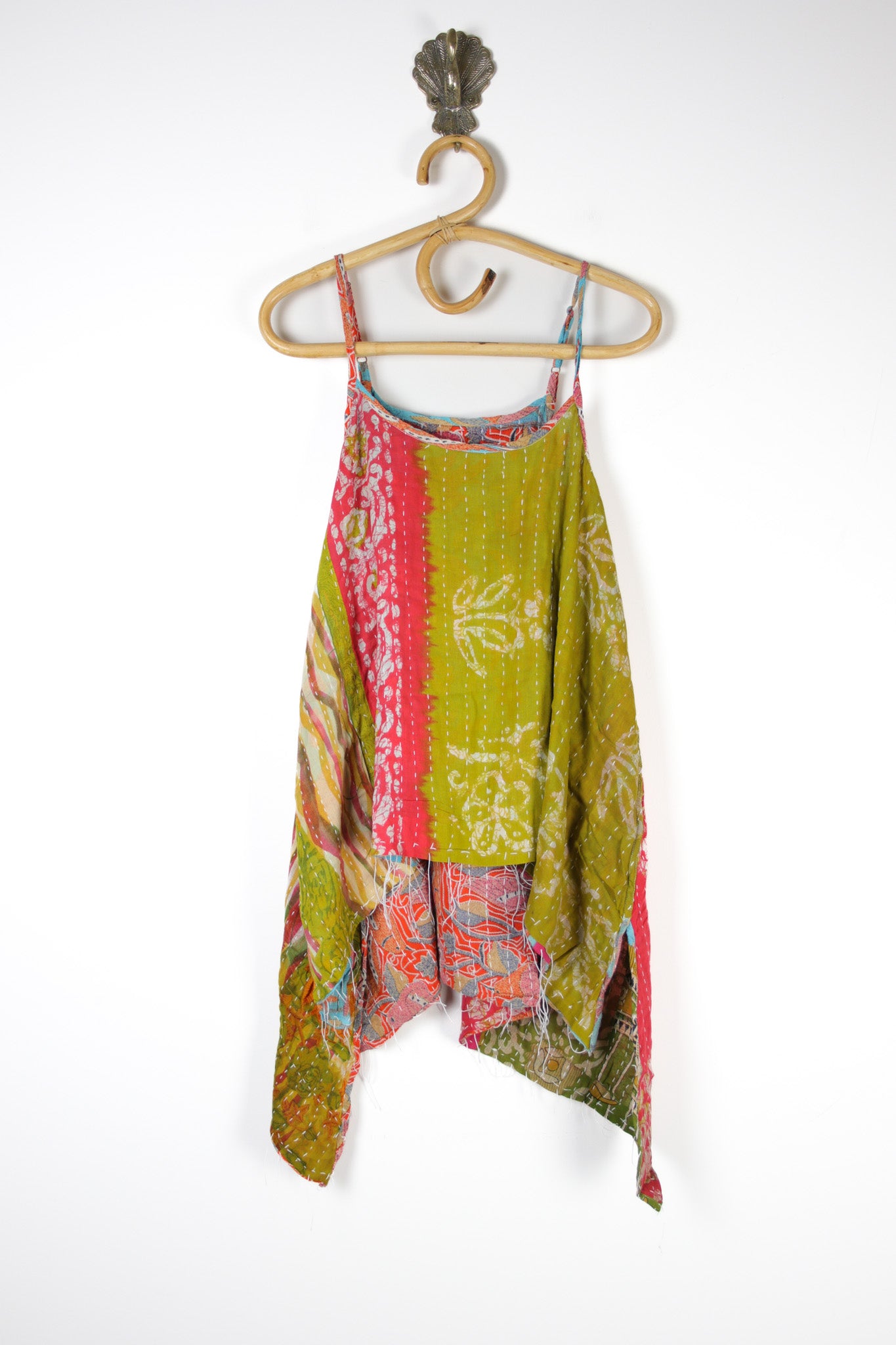 Made from 2 layers of upcycled cotton kantha these beauties have adjustable straps and a relaxed, oversized fit that drapes like a dream. The hi-lo hem adds a little swoosh and they're reversible, which we LOVE!