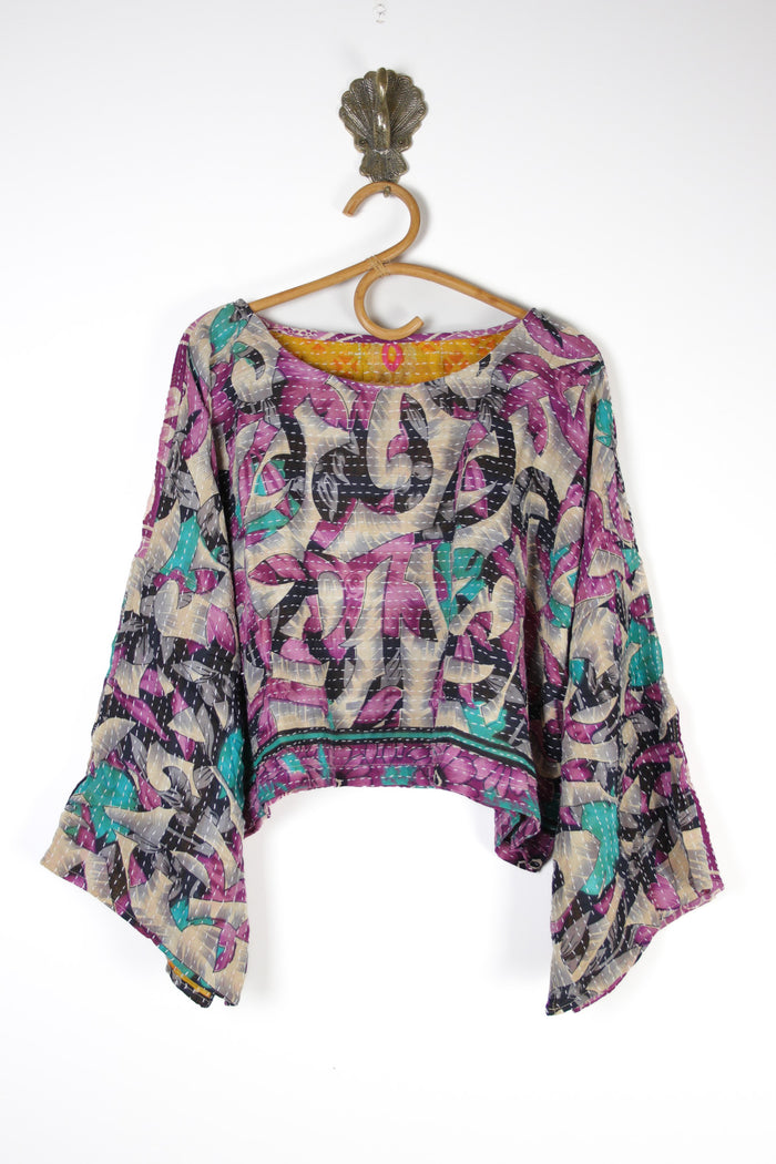 'Saral' is simple or easygoing in Hindi. These are made from upcycled cotton kantha and 100% reversible so you get 2 tops in 1. They have long sleeves, a wide neckline and are the perfect cropped length to wear with our high waist pants. Super comfy and versatile, each one is a treasure.