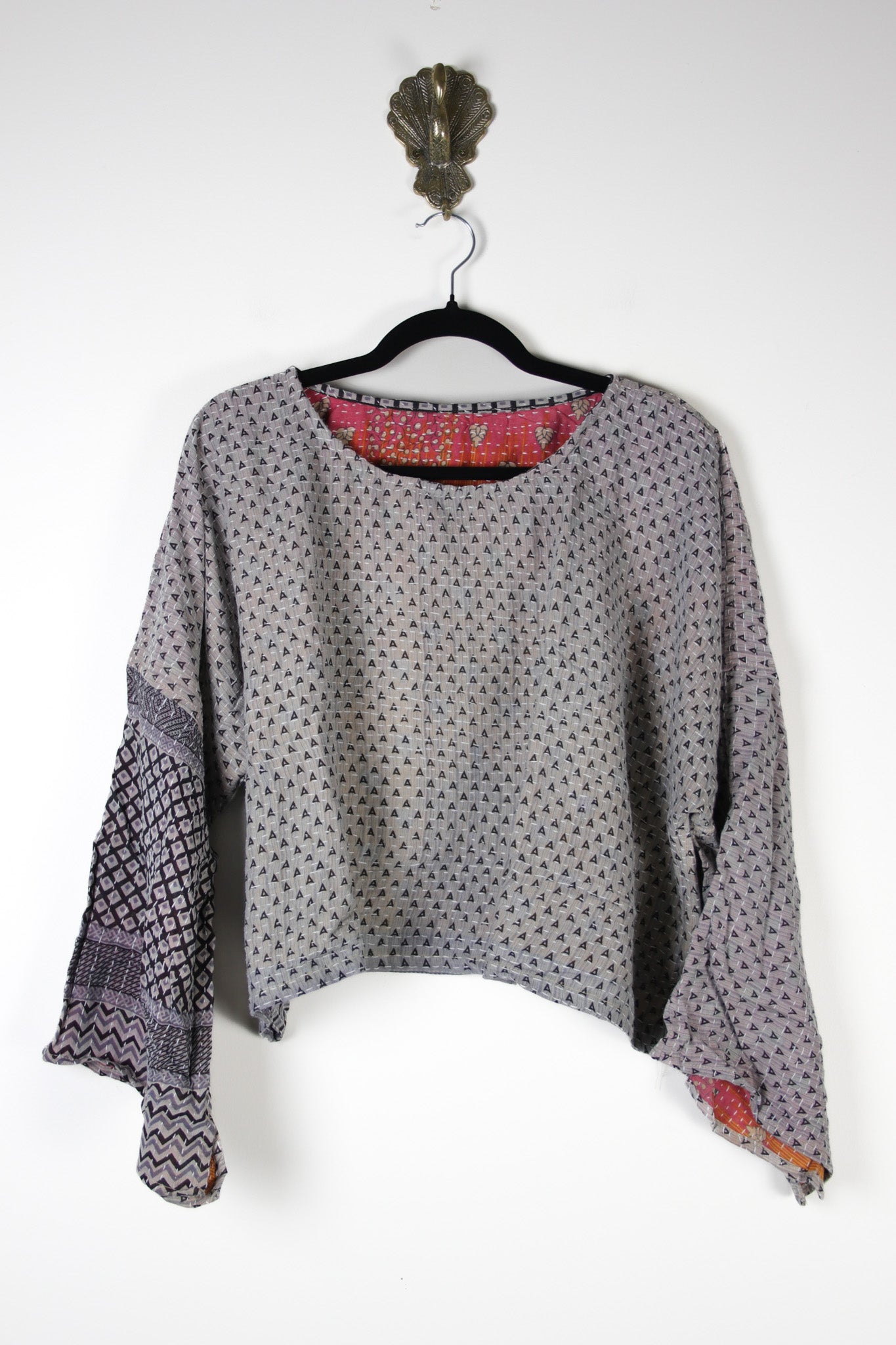 'Saral' is simple or easygoing in Hindi. These are made from upcycled cotton kantha and 100% reversible so you get 2 tops in 1. They have long sleeves, a wide neckline and are the perfect cropped length to wear with our high waist pants. Super comfy and versatile, each one is a treasure.
