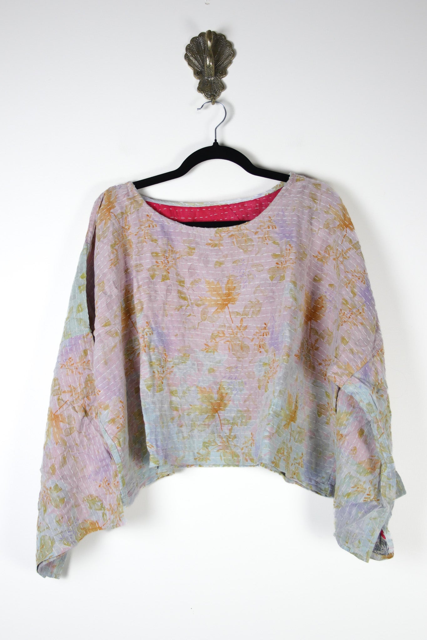 'Saral' is simple or easygoing in Hindi. These are made from upcycled cotton kantha and 100% reversible so you get 2 tops in 1. They have long sleeves, a wide neckline and are the perfect cropped length to wear with our high waist pants. Super comfy and versatile, each one is a treasure.
