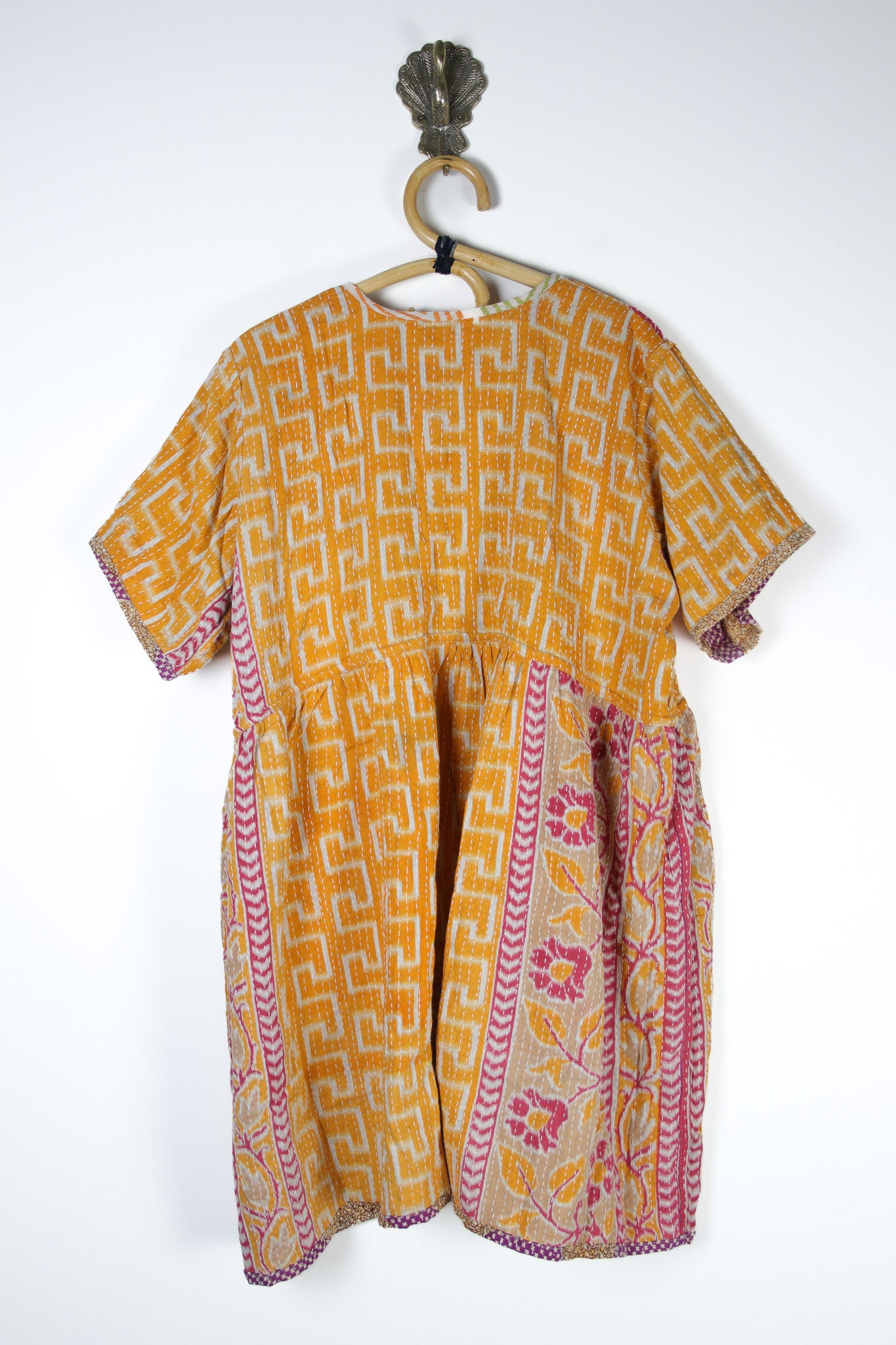 Disclaimer: All our kantha clothing is made using vintage Indian cotton fabrics, there may occasionally be very small repairs, threads, marks or pattern/dye inconsistencies. We do our best to avoid these but it does happen on occasion, these fabrics are created from cotton saris that have lived a life previous. If you are unsure just drop us an email.