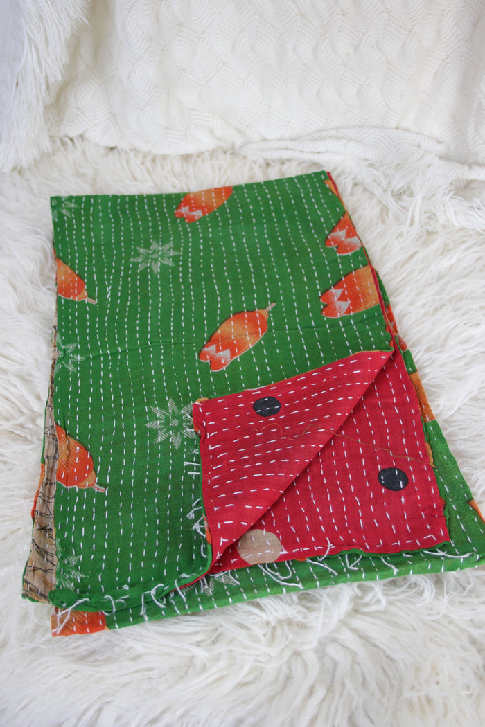 Our Vagabond Kantha Scarves are made from hand-stitched Indian cotton kantha. They each have a different pattern and colourway on either side, so no two scarves are ever the same.