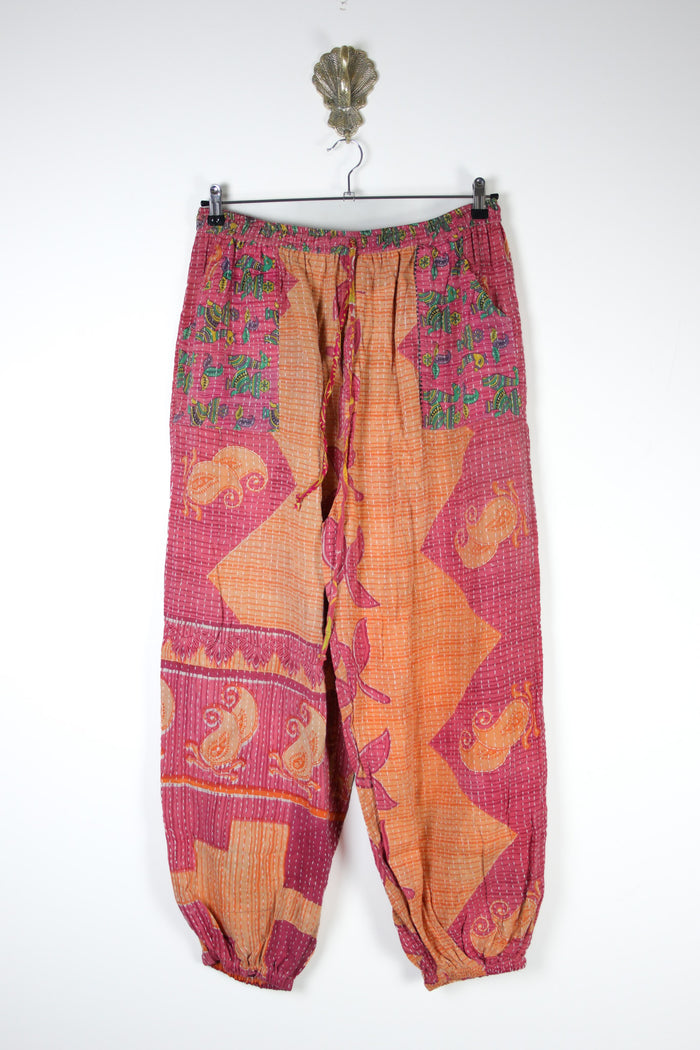 Made from soft 2-layer recycled kantha, they’re all about comfort without losing the vibe. With an easy elastic waistband (and drawstring, of course), deep pockets and elastic cuffs at the ankles, they’re equal parts relaxed and fun. Don't forget, they're reversible too! Each pair is one-of-a-kind, stitched from preloved cotton kantha in a mix of prints and colours you won’t find twice.