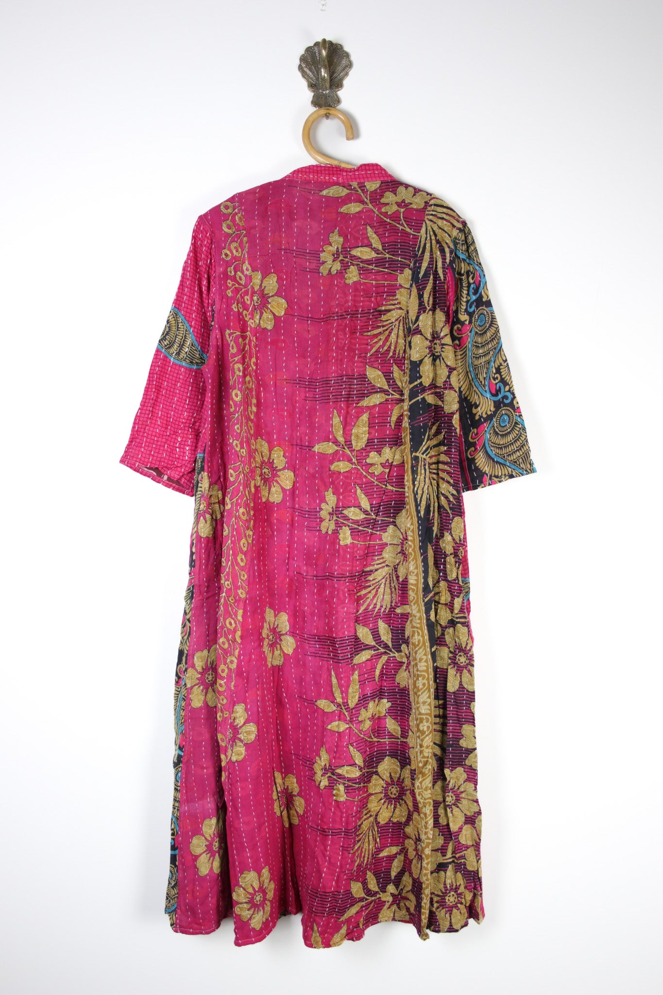 Disclaimer: All our kantha clothing is made using vintage Indian cotton fabrics, there may occasionally be very small repairs, threads, marks or pattern/dye inconsistencies. We do our best to avoid these but it does happen on occasion, these fabrics are created from cotton saris that have lived a life previous. If you are unsure just drop us an email.