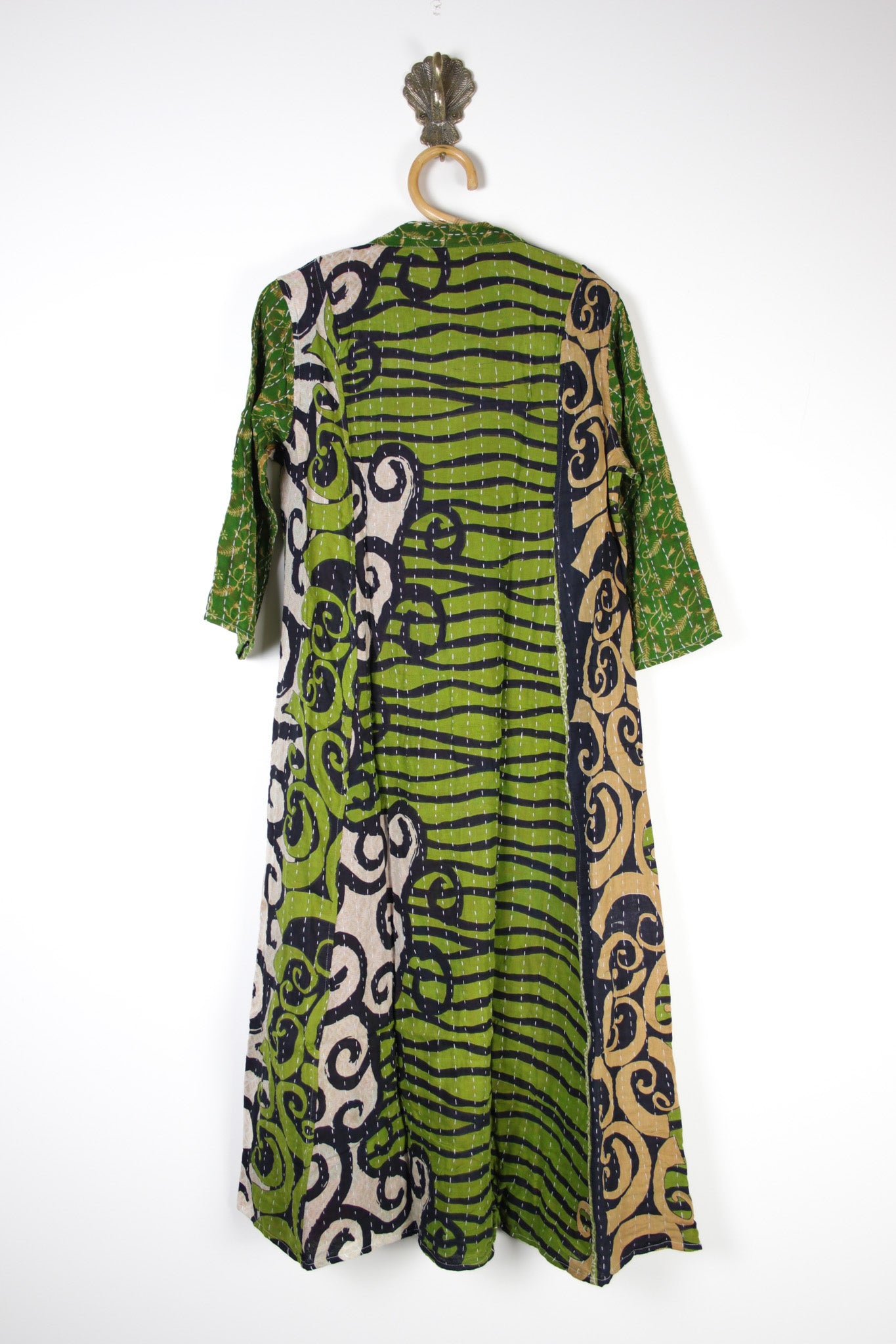 Disclaimer: All our kantha clothing is made using vintage Indian cotton fabrics, there may occasionally be very small repairs, threads, marks or pattern/dye inconsistencies. We do our best to avoid these but it does happen on occasion, these fabrics are created from cotton saris that have lived a life previous. If you are unsure just drop us an email.