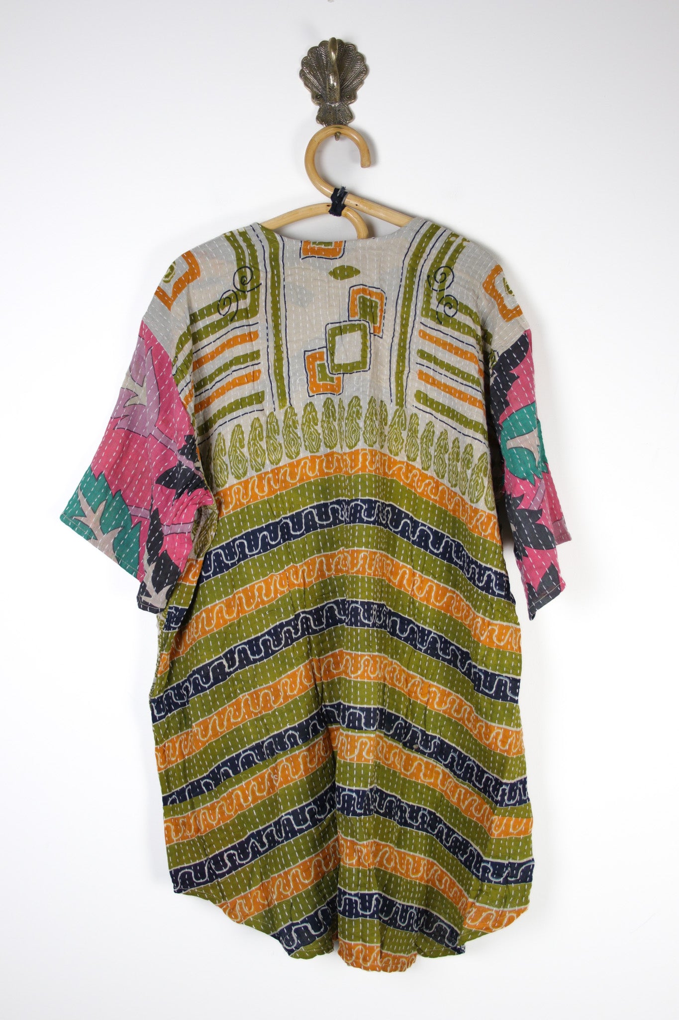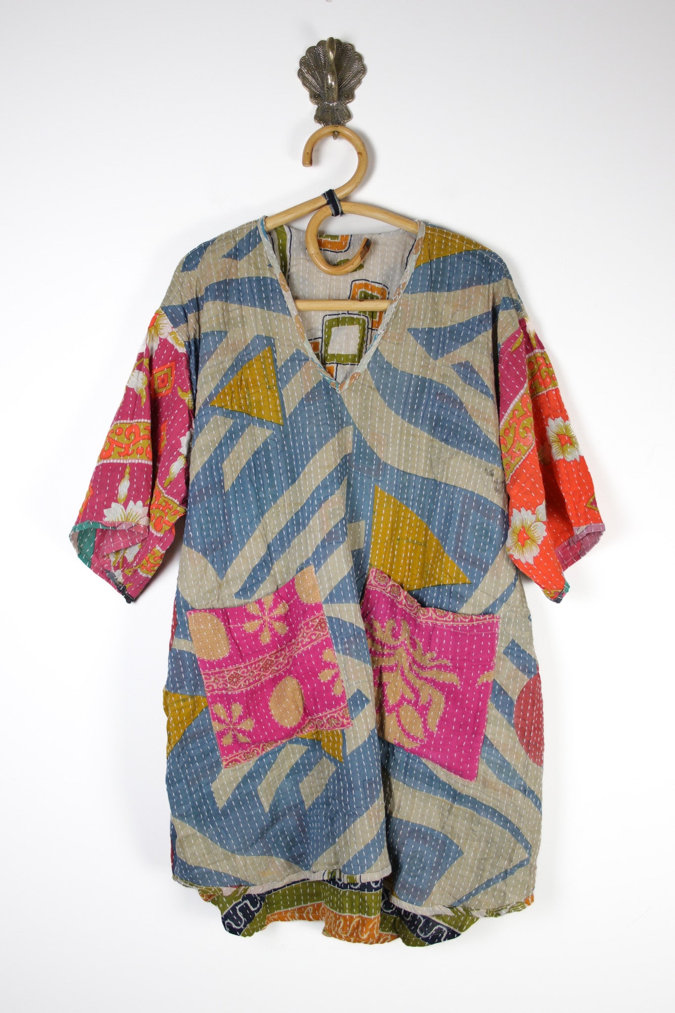 Disclaimer: All our kantha clothing is made using vintage Indian cotton fabrics, there may occasionally be very small repairs, threads, marks or pattern/dye inconsistencies. We do our best to avoid these but it does happen on occasion, these fabrics are created from cotton saris that have lived a life previous. If you are unsure just drop us an email.