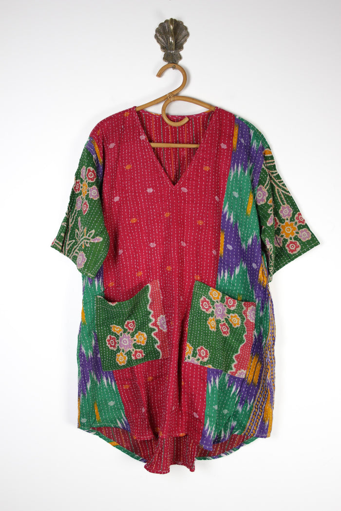 Disclaimer: All our kantha clothing is made using vintage Indian cotton fabrics, there may occasionally be very small repairs, threads, marks or pattern/dye inconsistencies. We do our best to avoid these but it does happen on occasion, these fabrics are created from cotton saris that have lived a life previous. If you are unsure just drop us an email.