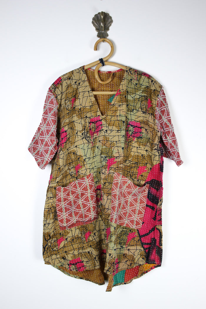 Disclaimer: All our kantha clothing is made using vintage Indian cotton fabrics, there may occasionally be very small repairs, threads, marks or pattern/dye inconsistencies. We do our best to avoid these but it does happen on occasion, these fabrics are created from cotton saris that have lived a life previous. If you are unsure just drop us an email.