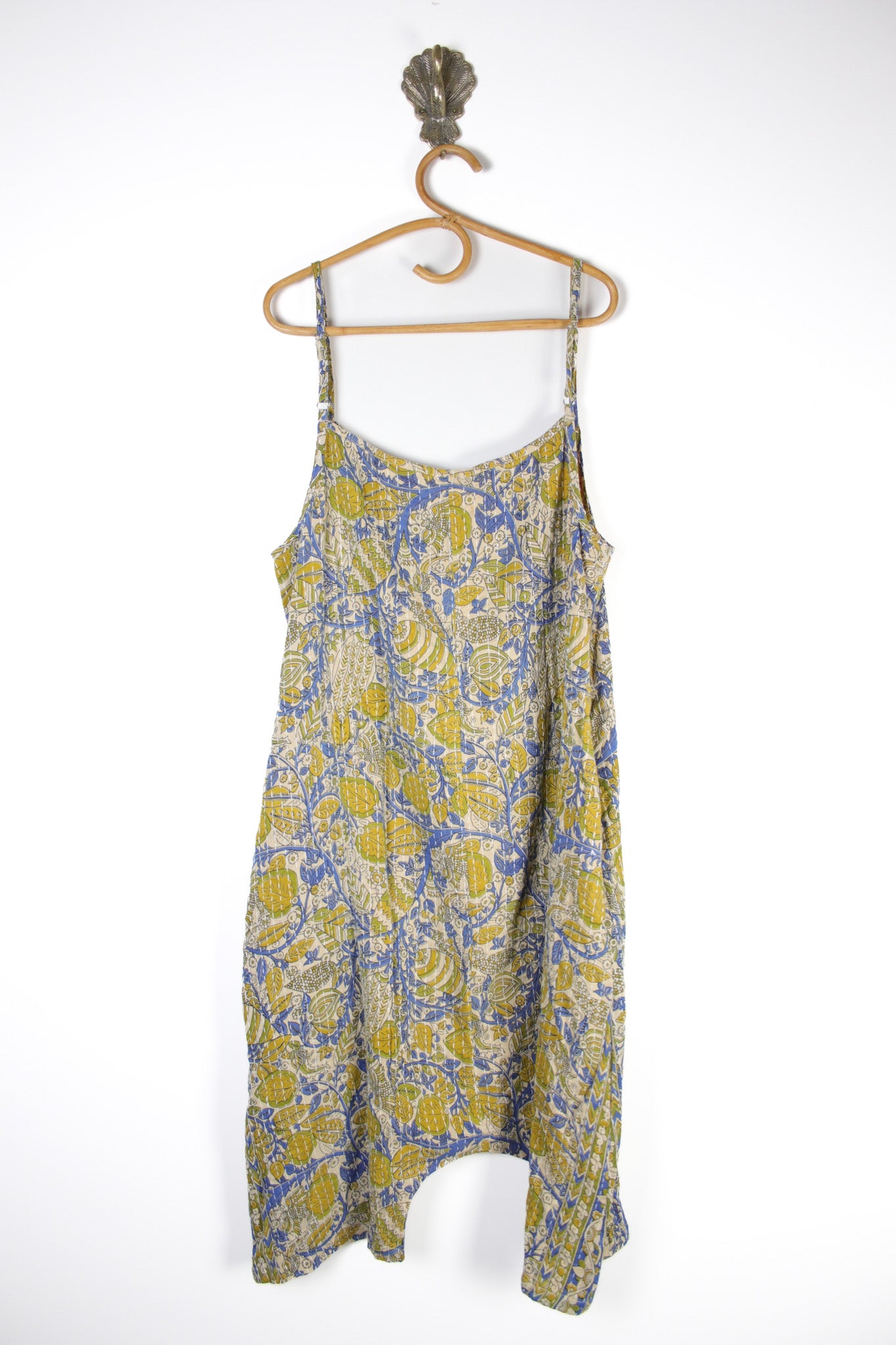 Disclaimer: All our kantha clothing is made using vintage Indian cotton fabrics, there may occasionally be very small repairs, threads, marks or pattern/dye inconsistencies. We do our best to avoid these but it does happen on occasion, these fabrics are created from cotton saris that have lived a life previous. If you are unsure just drop us an email.