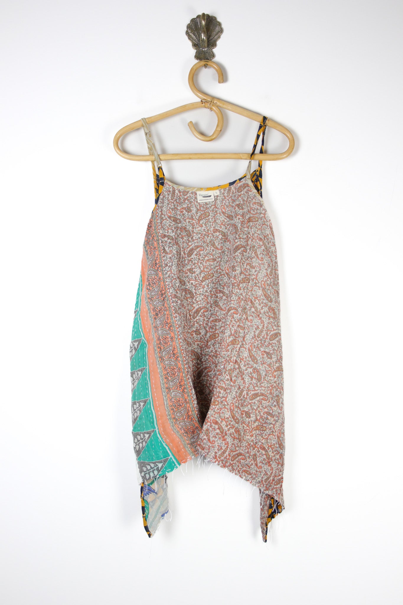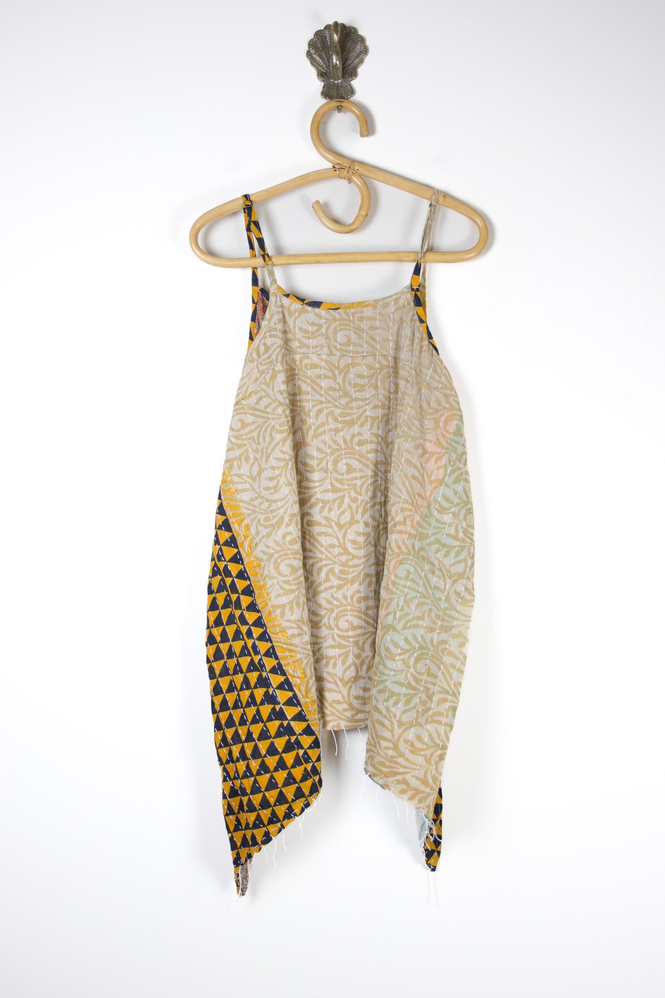 Made from 2 layers of upcycled cotton kantha these beauties have adjustable straps and a relaxed, oversized fit that drapes like a dream. The hi-lo hem adds a little swoosh and they're reversible, which we LOVE!
