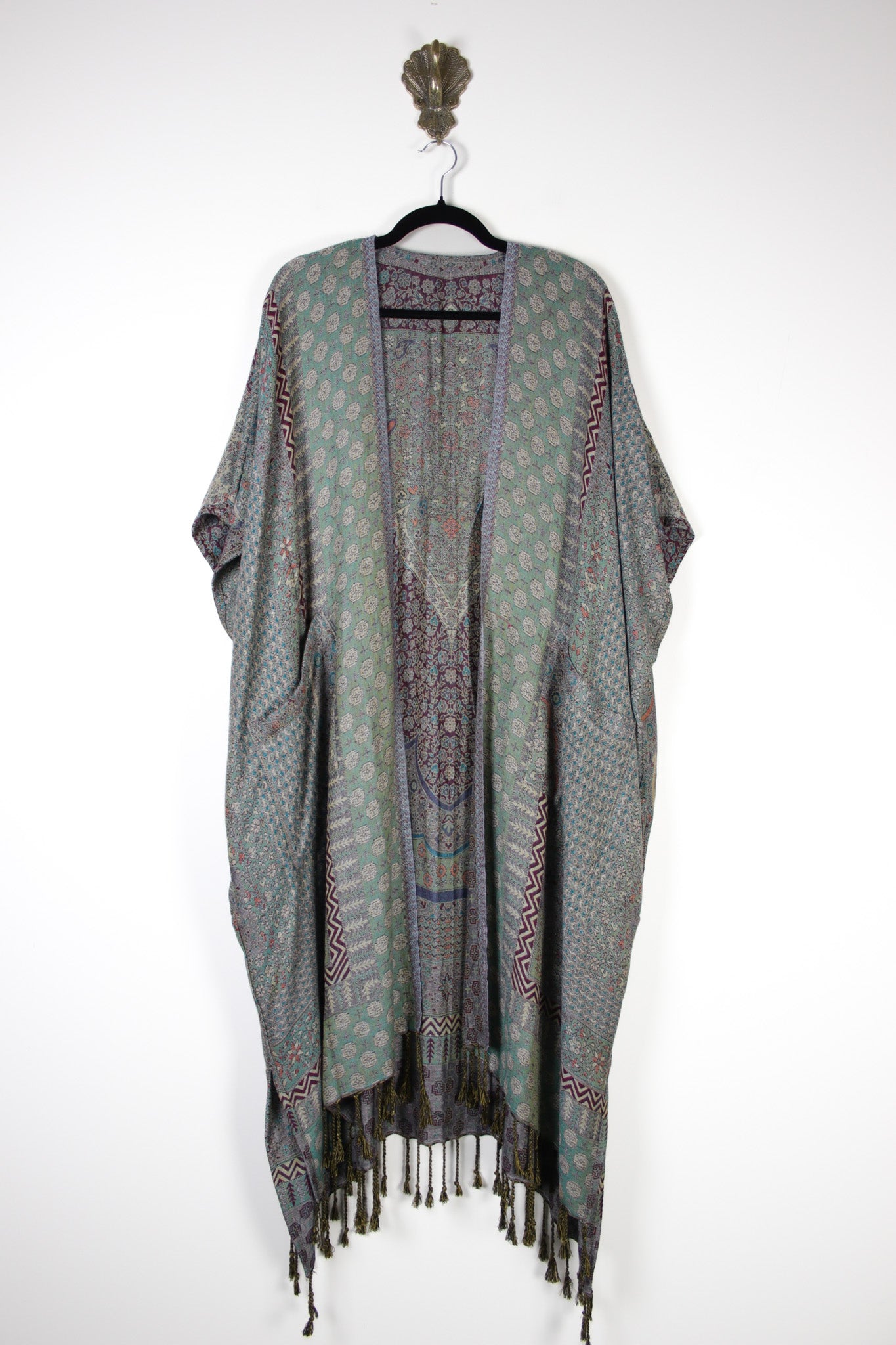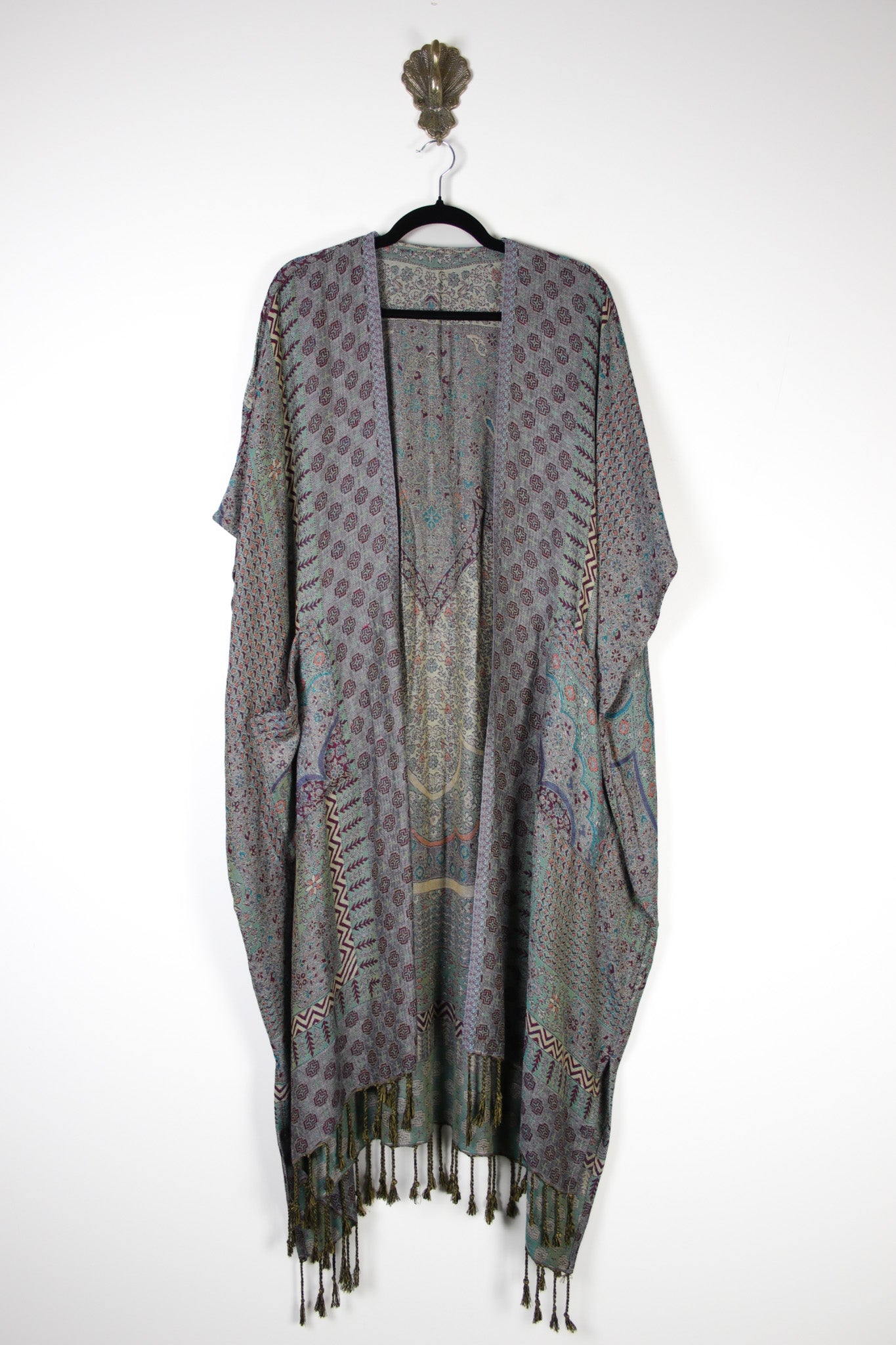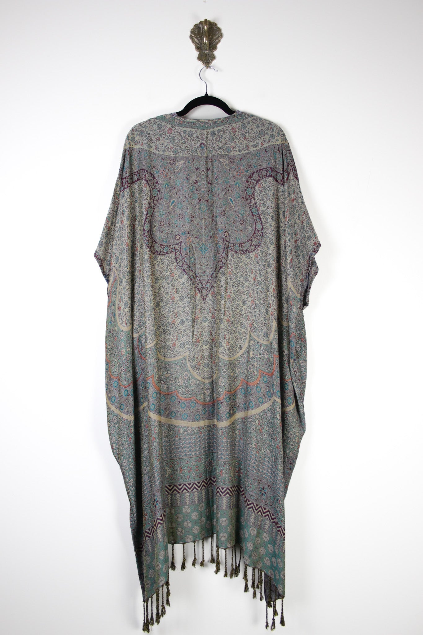 Every ruana is one of a kind, created from intricately woven Jamawar textiles that carry their own unique patterns and story. A simple, timeless piece that feels special the moment you slip it on.