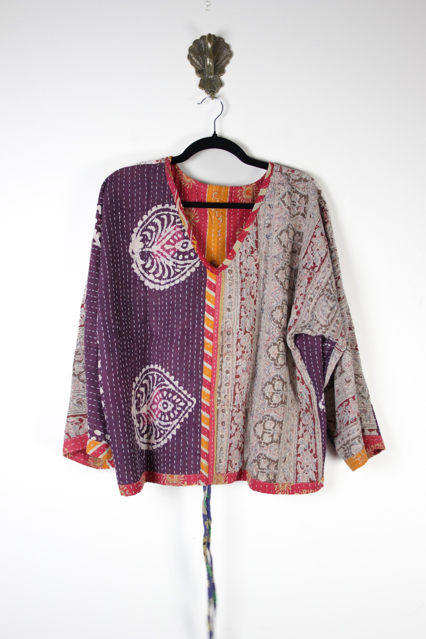 Disclaimer: All our kantha clothing is made using vintage Indian cotton fabrics, there may occasionally be very small repairs, threads, marks or pattern/dye inconsistencies. We do our best to avoid these but it does happen on occasion, these fabrics are created from cotton saris that have lived a life previous. If you are unsure just drop us an email.