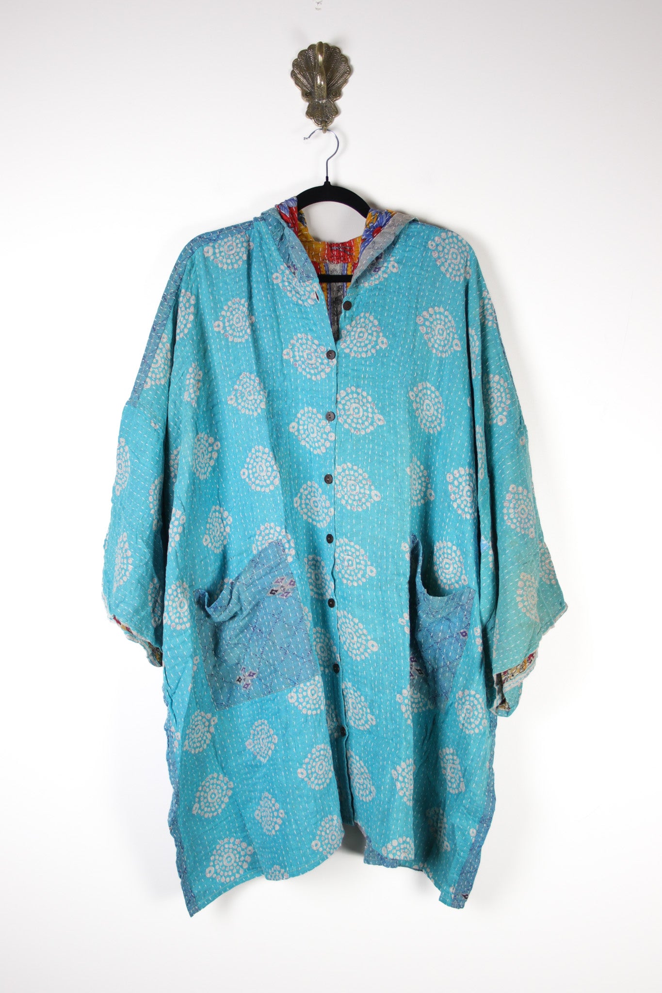 Disclaimer: All our kantha clothing is made using vintage Indian cotton fabrics, there may occasionally be very small repairs, threads, marks or pattern/dye inconsistencies. We do our best to avoid these but it does happen on occasion, these fabrics are created from cotton saris that have lived a life previous. If you are unsure just drop us an email.