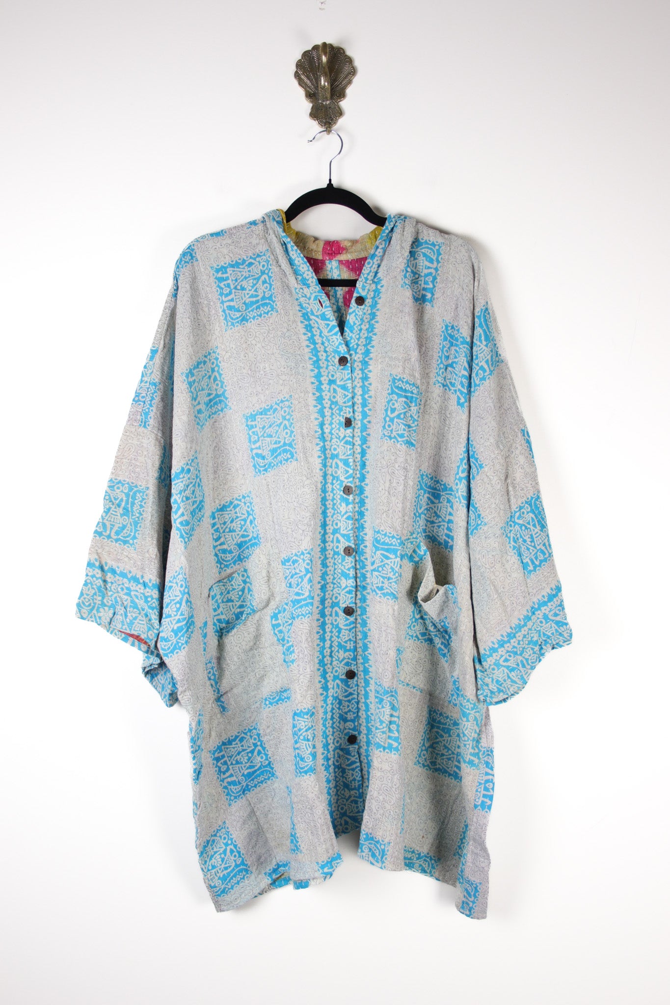 Disclaimer: All our kantha clothing is made using vintage Indian cotton fabrics, there may occasionally be very small repairs, threads, marks or pattern/dye inconsistencies. We do our best to avoid these but it does happen on occasion, these fabrics are created from cotton saris that have lived a life previous. If you are unsure just drop us an email.