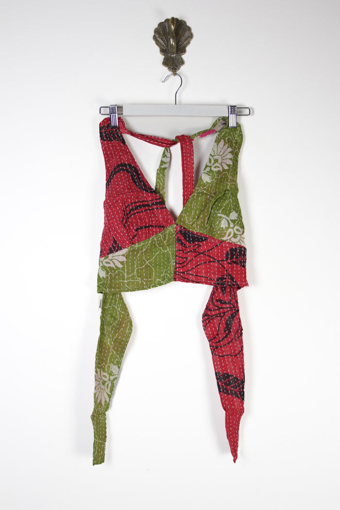 Our reversible kantha Sunseeker Halters are skillfully pieced together from 'scrap' fabrics leftover from our kantha pants because, as you know, we don’t like to waste any of this beautiful fabric!