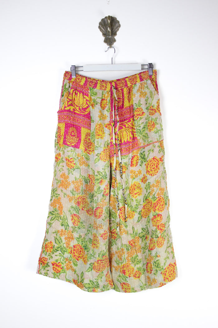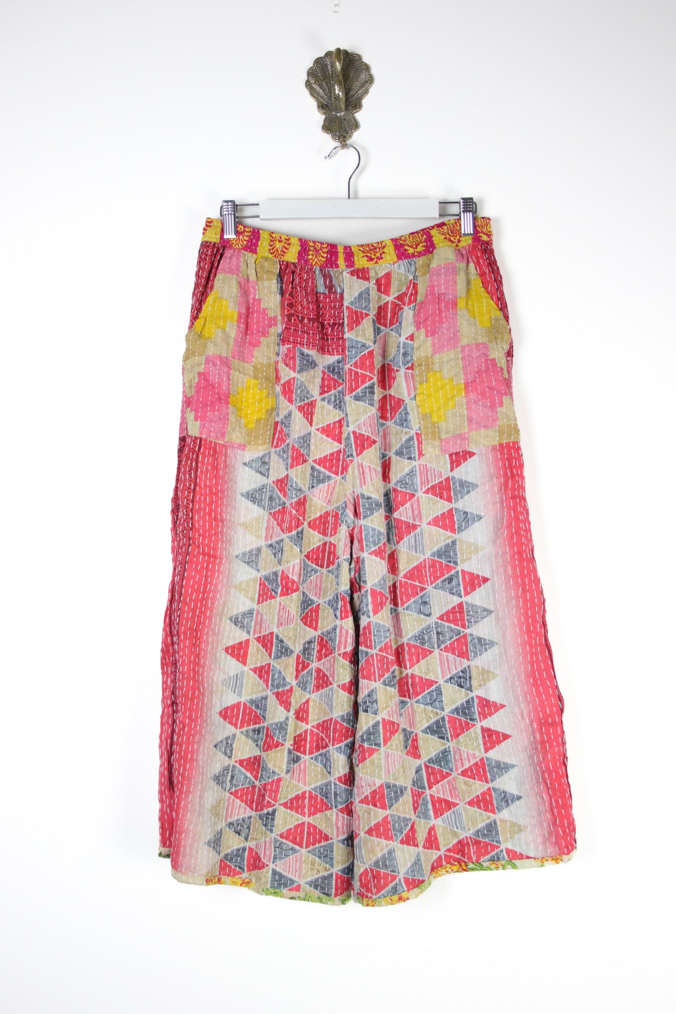 Crafted from Indian cotton Kantha fabric so each pair is one of a kind. Featuring an elastic waistband and drawstring for the perfect fit, deep patch pockets and cropped wide legs. Plus, we made them 100% reversible with pockets on the inside too!