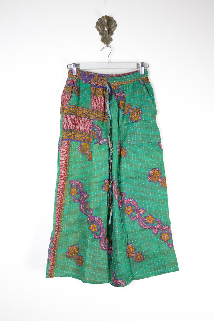 Crafted from Indian cotton Kantha fabric so each pair is one of a kind. Featuring an elastic waistband and drawstring for the perfect fit, deep patch pockets and cropped wide legs. Plus, we made them 100% reversible with pockets on the inside too!