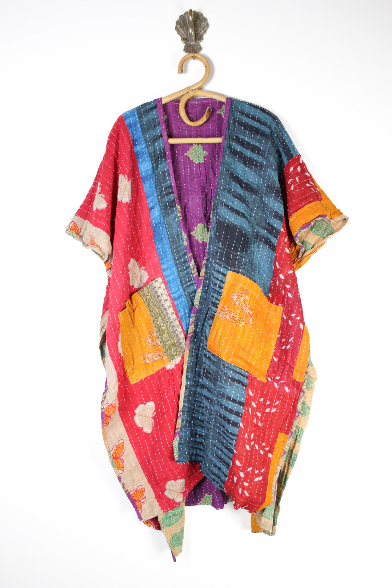 Our best-selling Kantha Ruanas are fully reversible with big, roomy pockets inside and out! Crafted from the softest 3-layer Indian cotton kantha fabrics, each kimono is a one-of-a-kind piece, the perfect layering piece for that effortless bohemian touch.